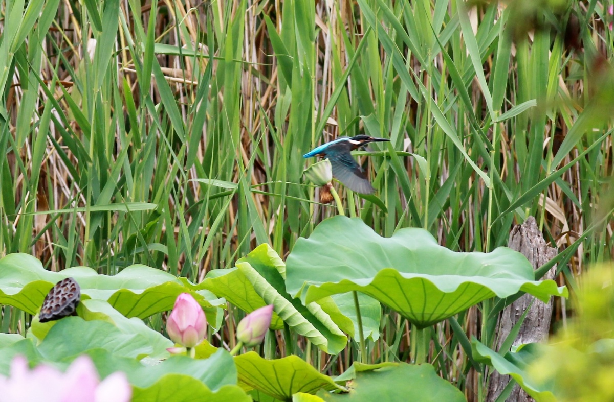 駄目モト”で寄った公園でラッキーな蓮翡翠が撮れました~♪ 最近、オヤジのお休みの日の天候が悪く、晴れ男返上だな!って思っていましたが……少しはツキ”が廻ってきたかな!~(笑)