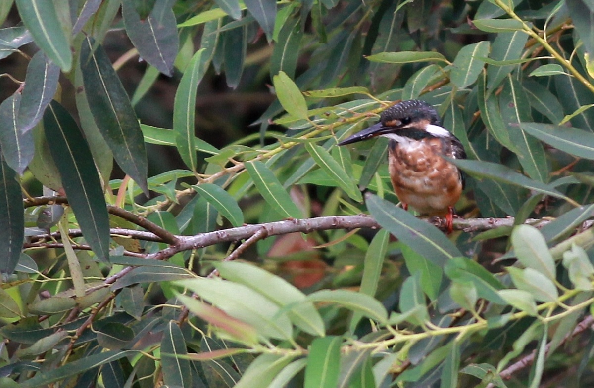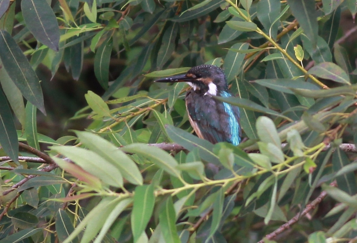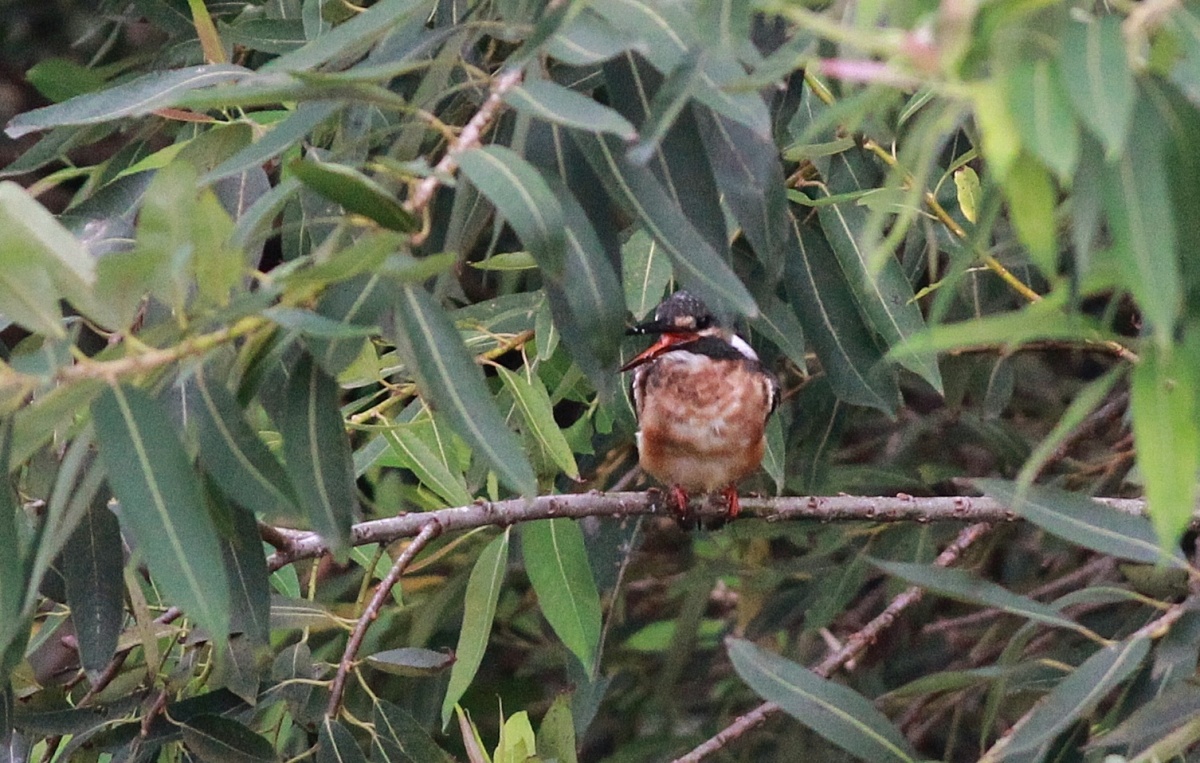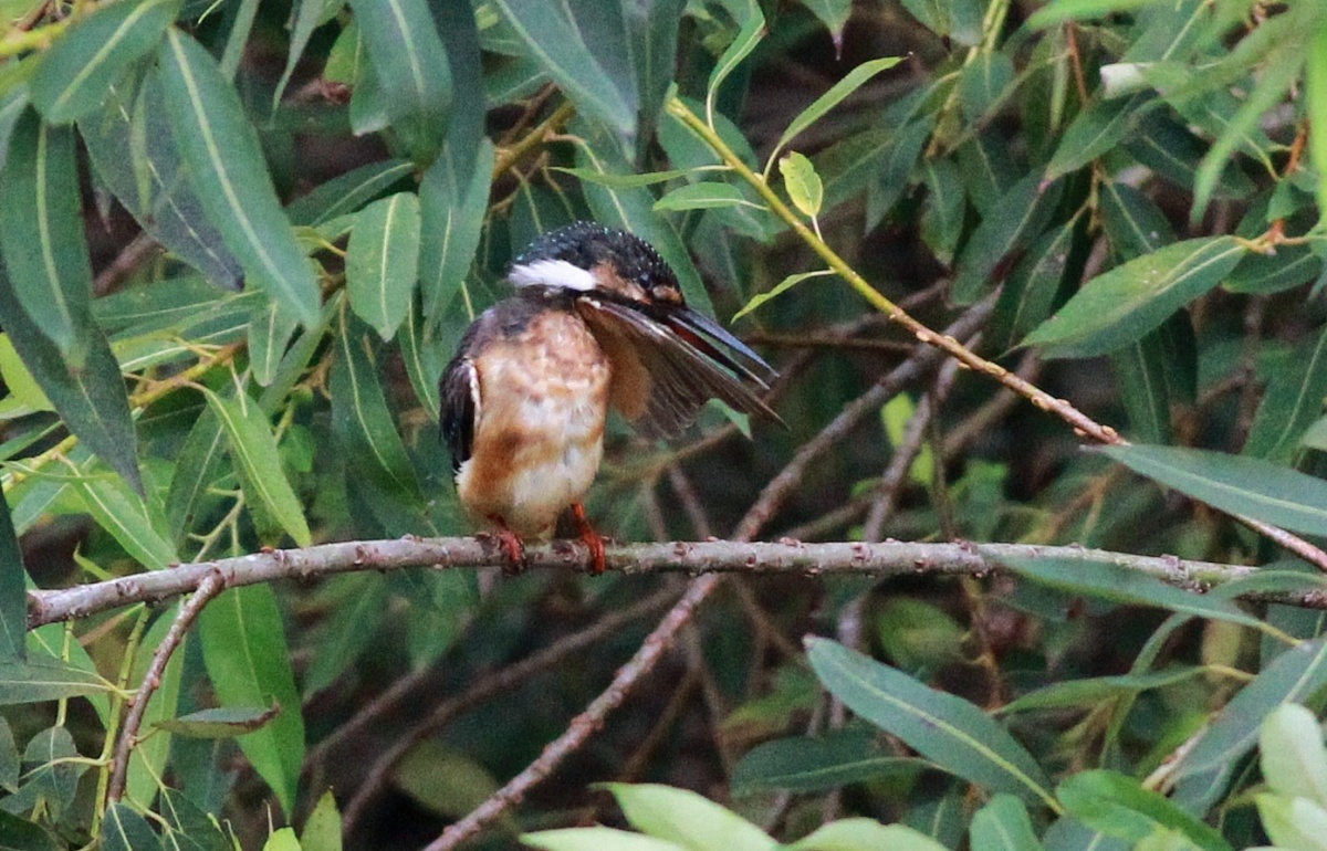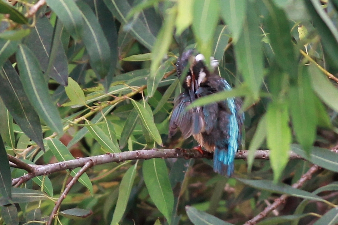 今朝もすでに食事を終えてしまったらしくて、もう川の対岸の風で揺れている木の中で毛繕いでした。