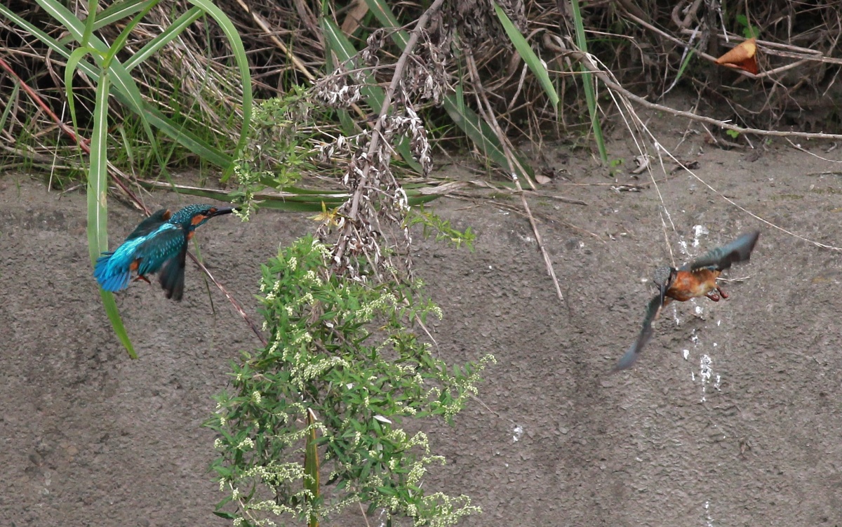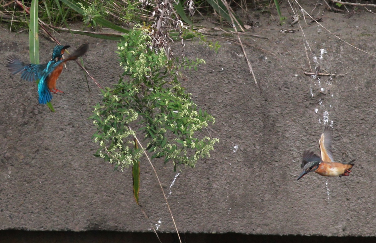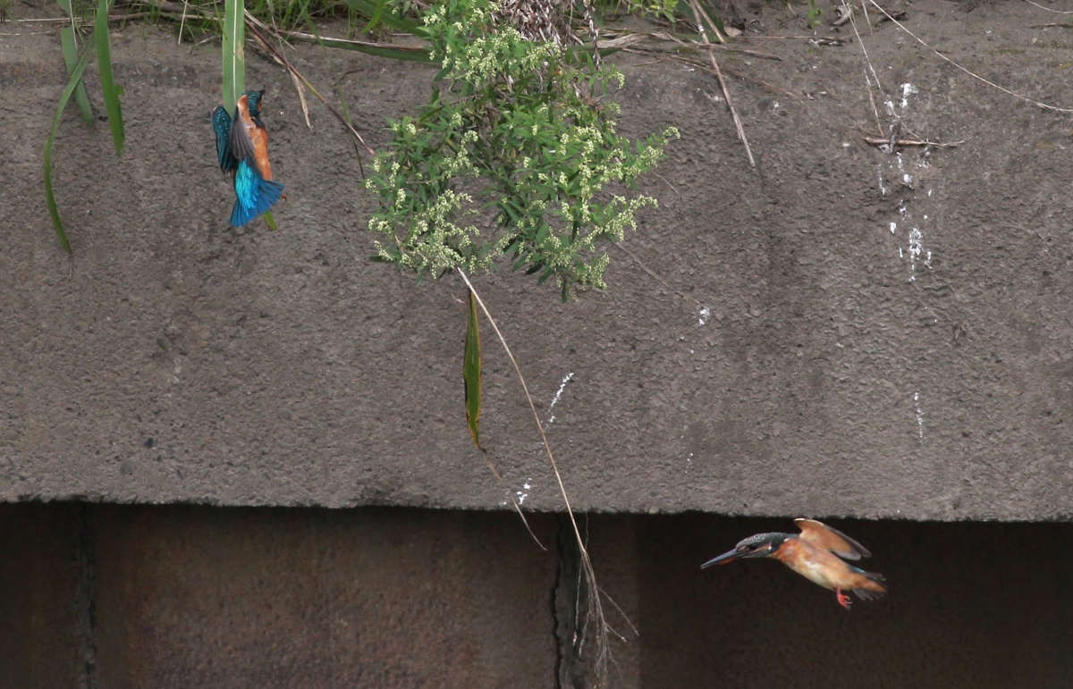 今日も親子の翡翠が縄張り争いをしているようで、10時前に行った時には既に暑くなったこの場所にカメラマンが大勢~!
