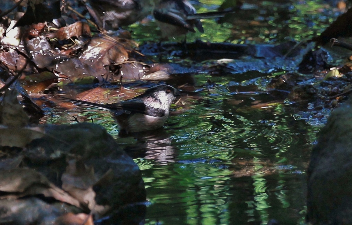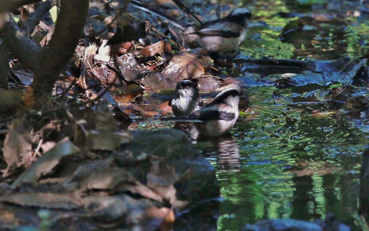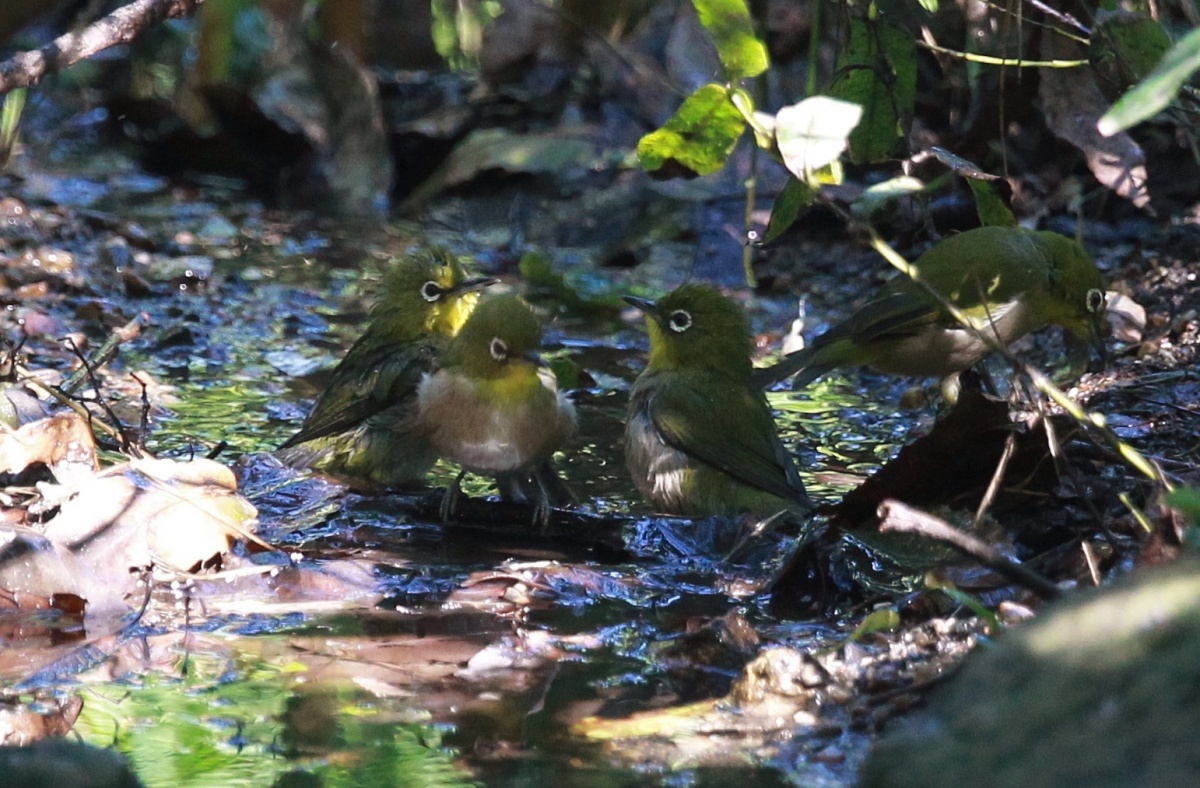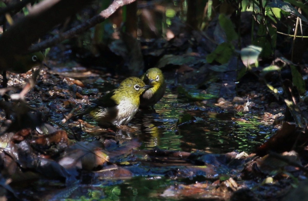 先日の近隣の公園の水場から~…夕方は黄金色に光るこの水場も午前中は青くて~これもまた綺麗な!……ピン甘”ですが固まって可愛かったメジロ達~♪