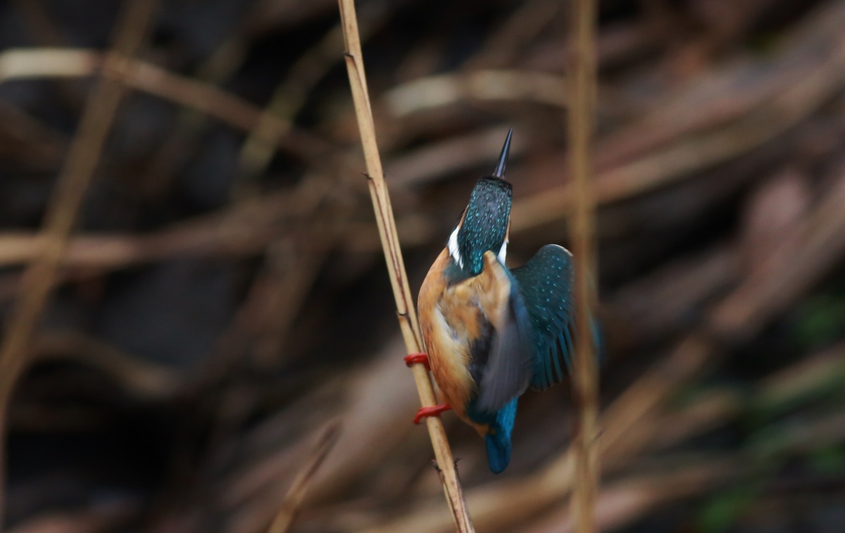 川の流れが早いせいで、中州と石垣の間の流れのほとんど無い場所で飛び込んでいました。