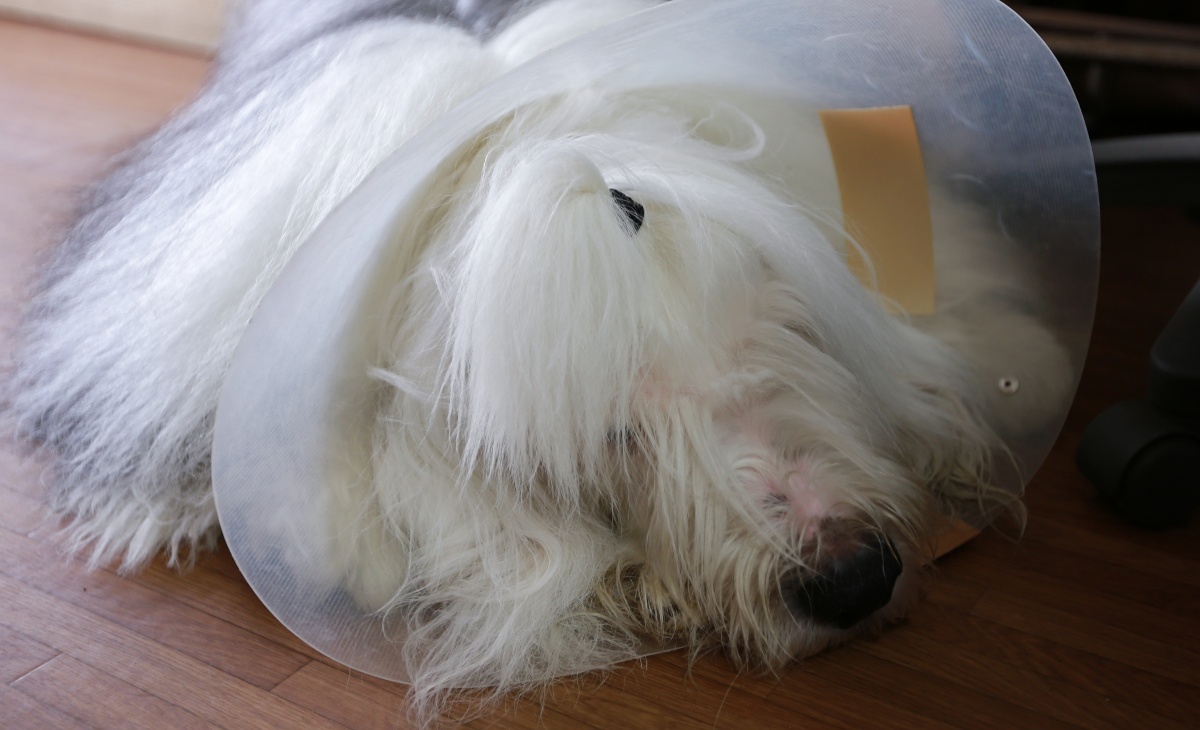 エリザベスカラーがたいへんお気に入りのようで……(笑) まだ当分の間は~カラーのお世話になりそうです。