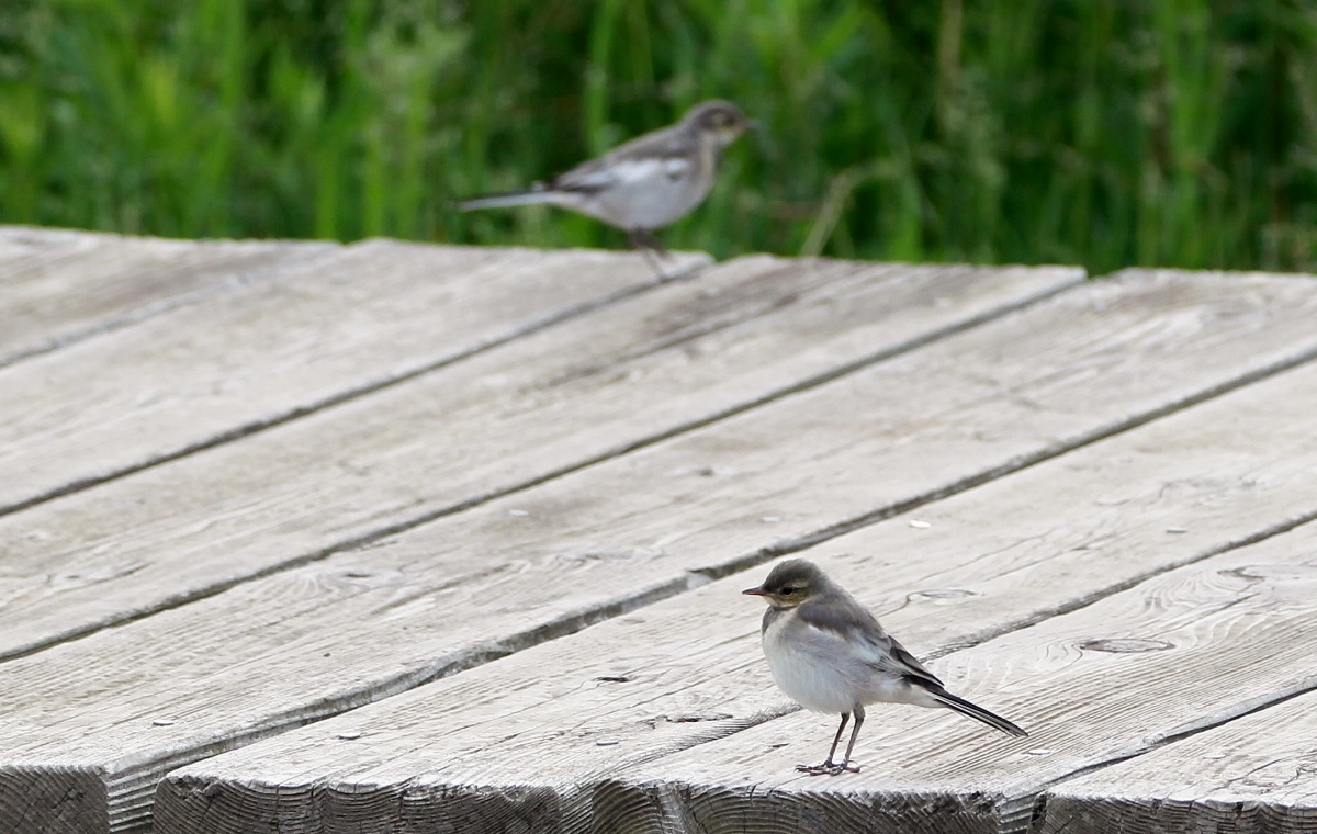 セキレイの雛が2羽……まだ臆することがなくて~野良猫にやられなければいいのですが!