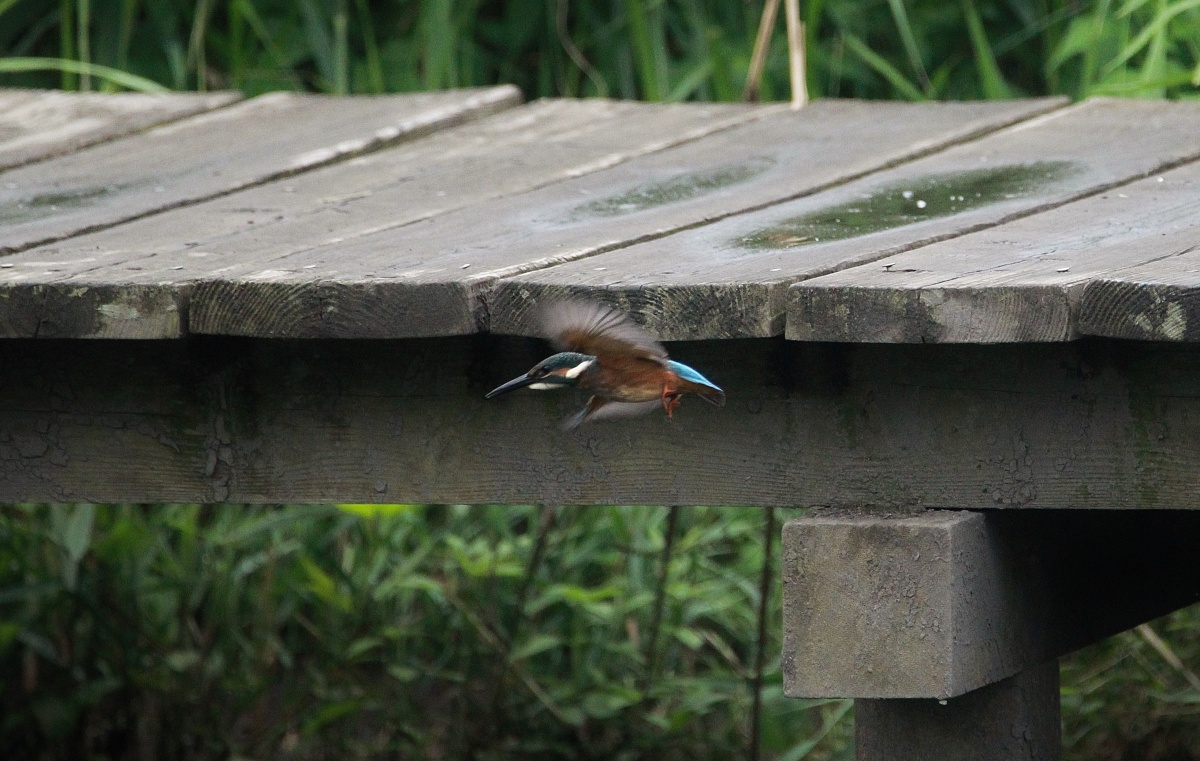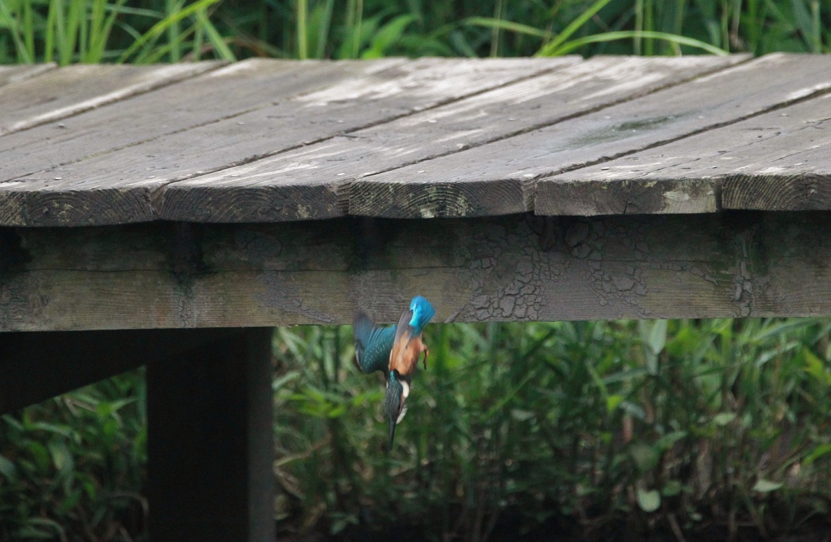 タイミング悪く散歩の方が~翡翠が留まっていた木道を歩いて来て(汗)直ぐに飛び去ってしまい~……涼しい鳥撮りでした!~(笑)