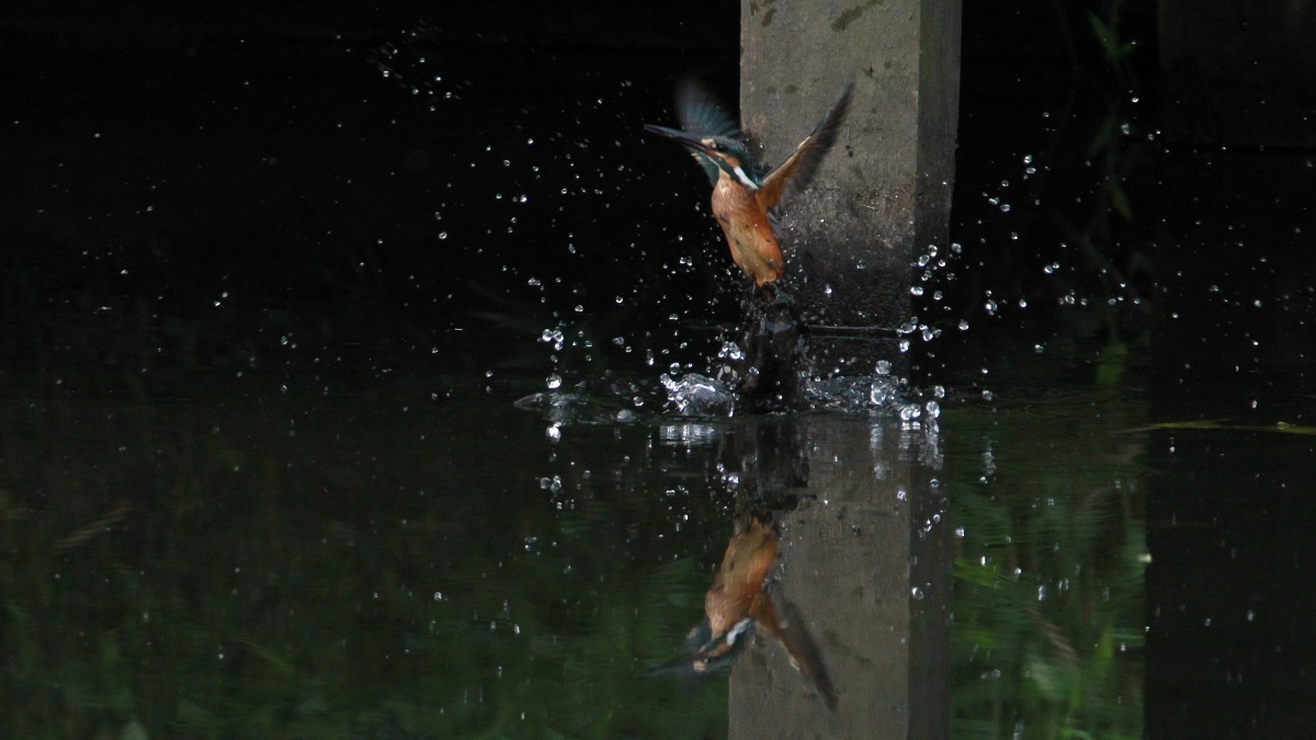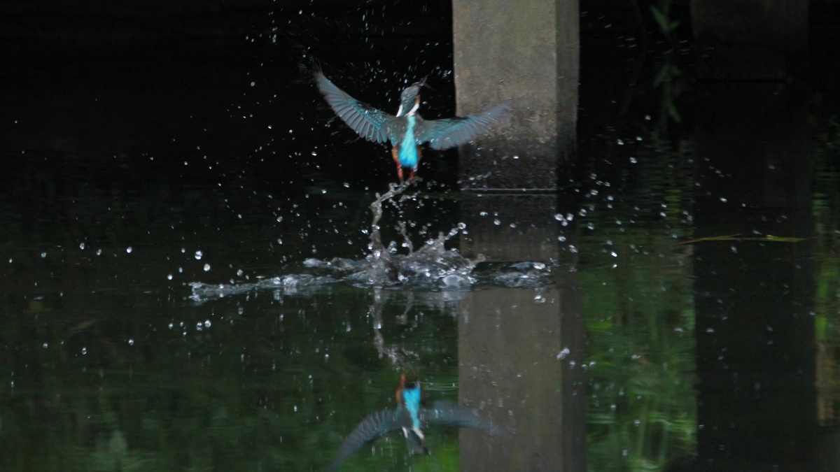 今朝の公園の池は珍しく賑やかでした~♪ 成鳥(親かな?)を入れて4羽の翡翠が早朝鳥鳥の短い時間の中でたっぷり遊んでくれました! よく飛び込む♀の若い翡翠は現われず…