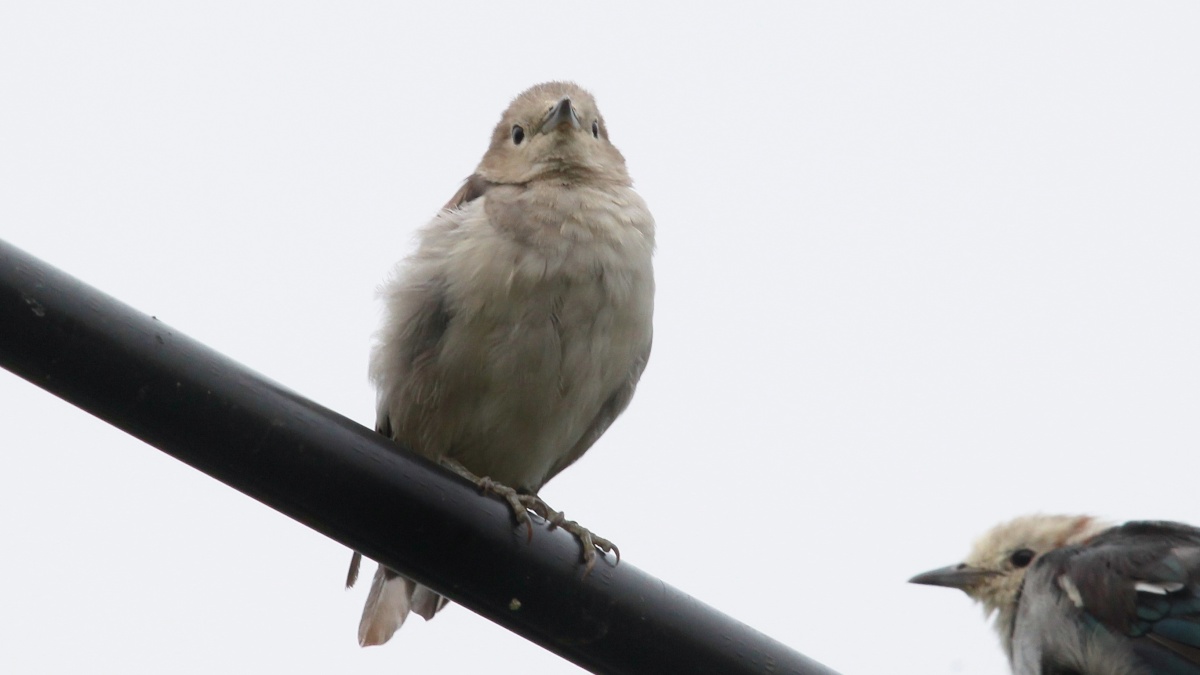 ~電線に留まっていました! まだワン達の散歩後の休憩中で……しかもボケオヤジは昨日の自宅に戻る時に、会社の事務所にカメラを置き忘れたままで、今日の早朝散歩ではカメラ無し!(汗)