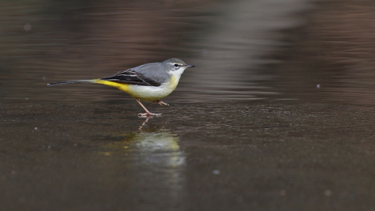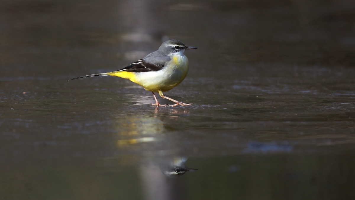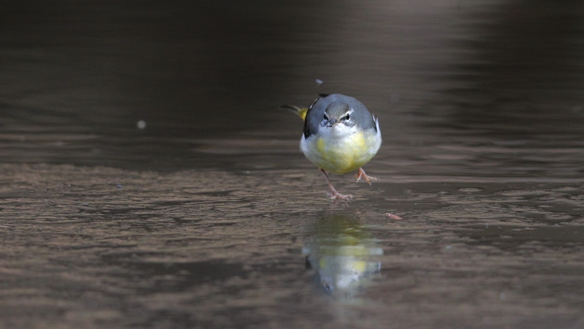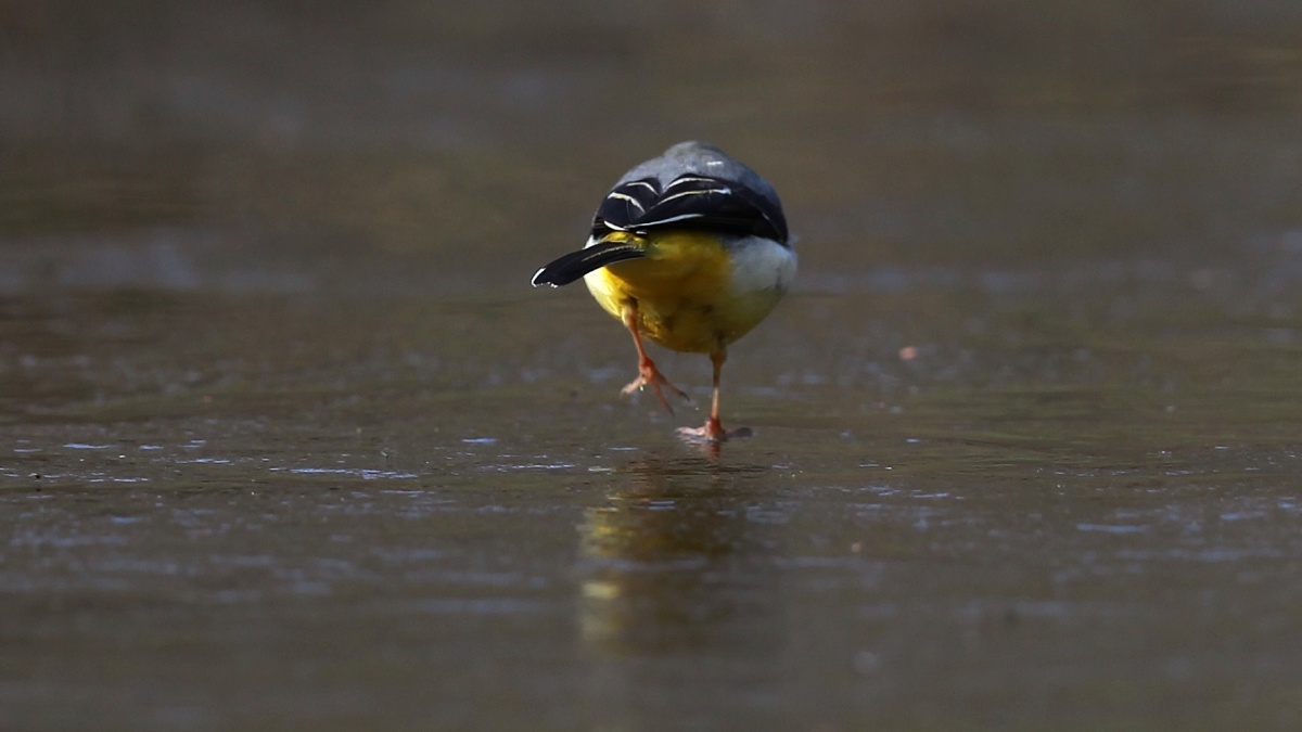 凍った池で遊んでいるキセキレイ…… スケートでもしているかのように滑って愉しんで遊んでいます~♪   お!ココから先は危ないぞ!