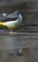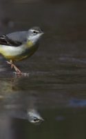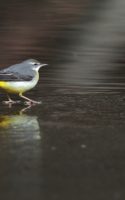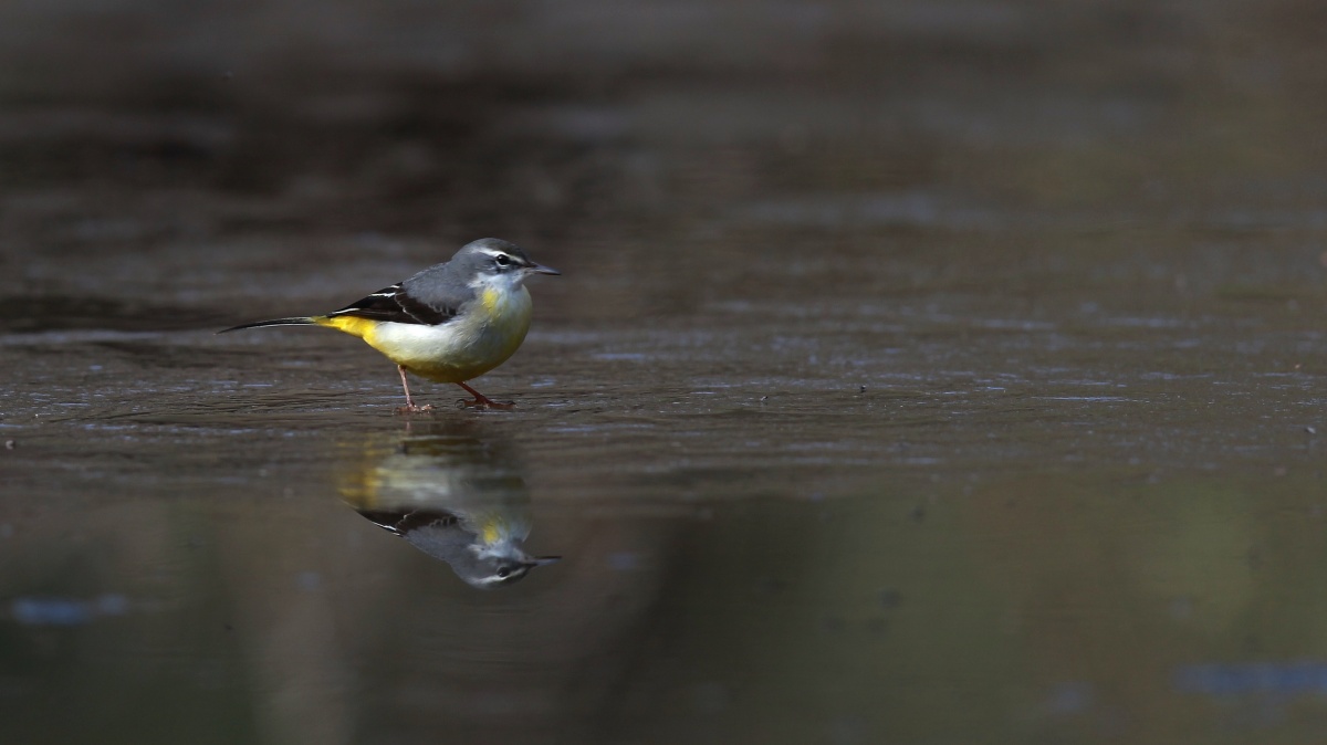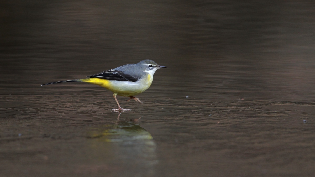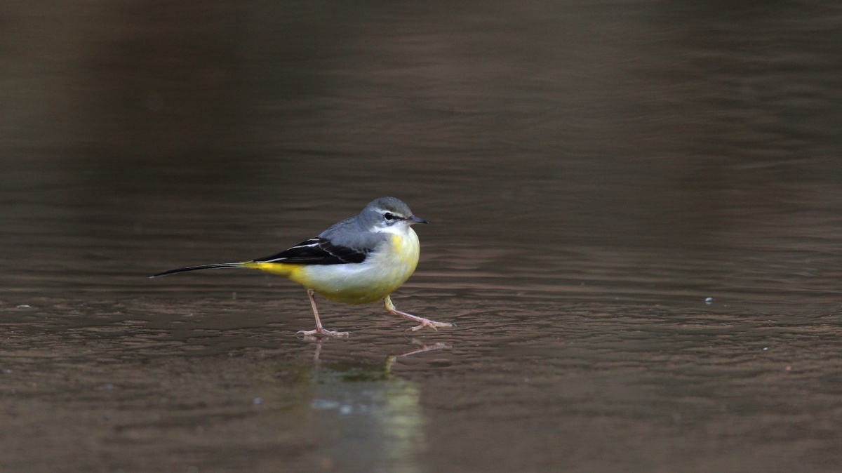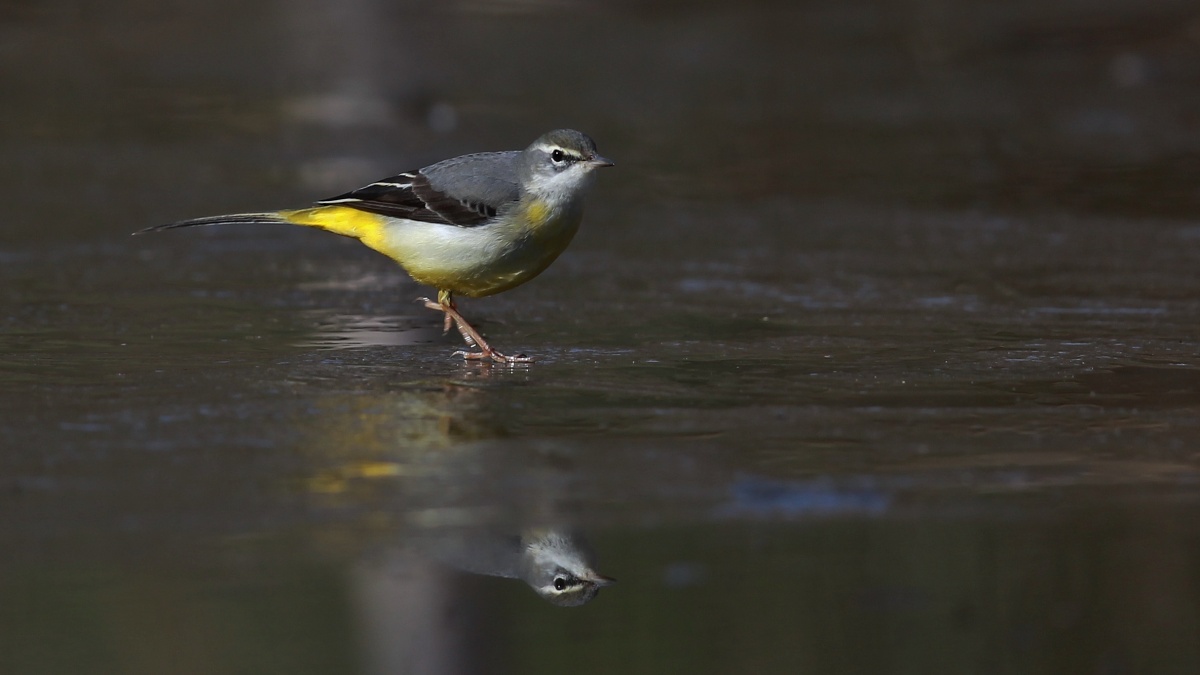 凍った池で遊んでいるキセキレイ…… スケートでもしているかのように滑って愉しんで遊んでいます~♪   お!ココから先は危ないぞ!