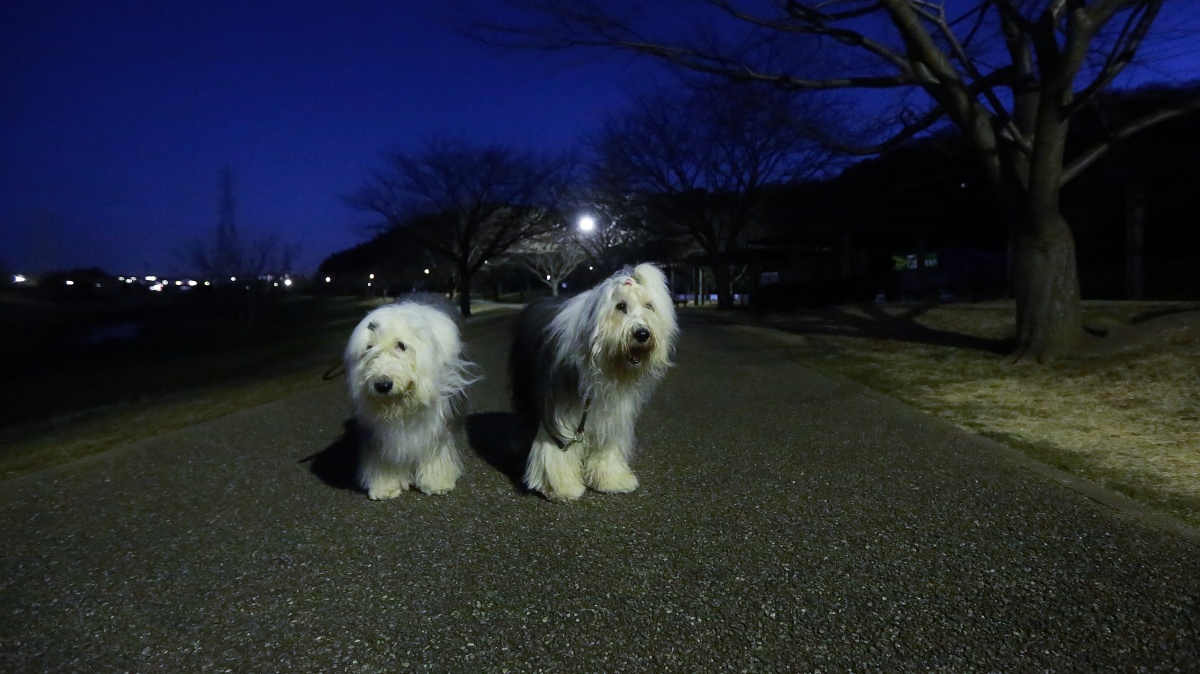相変わらずワン達の散歩はまだ暗い中~(笑)