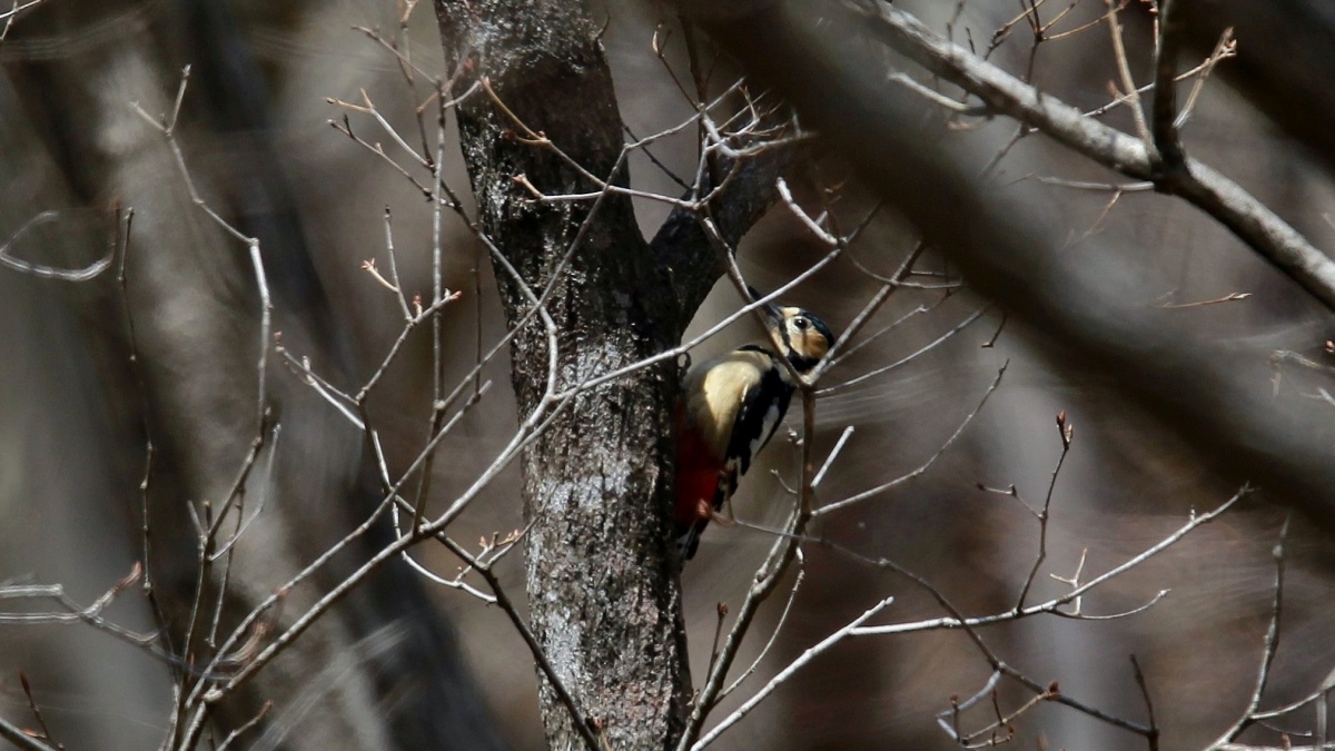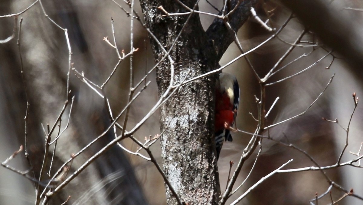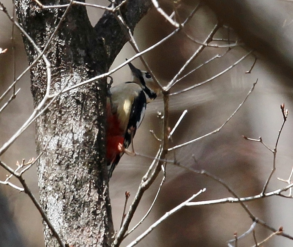 いや”やっと何の鳥だか判る程度の写真ですが……かなり遠くのアカゲラです。