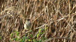待つこと15分!やっと出てきたと思ったらモズの登場でまた葦の下の方に隠れてしまいました。~(笑)
