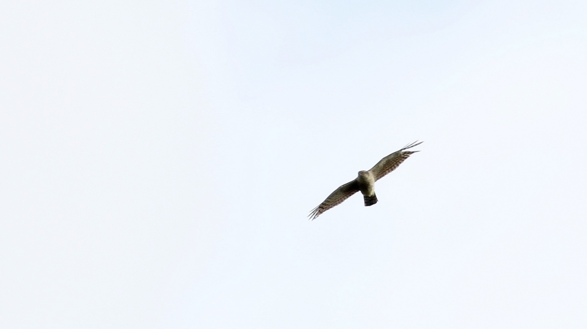 こんな時って後ろを撮ろうか?前を撮ろうか?…って、結構”慌てちゃったりしてカメラの設定を変える余裕も無く、折角”飛び込んでくれたのに何も出来ませんでした。……(爆)この日はモズの雛狙いで場所を移動した時に~かなり遠くですがオオタカも飛んでいました。