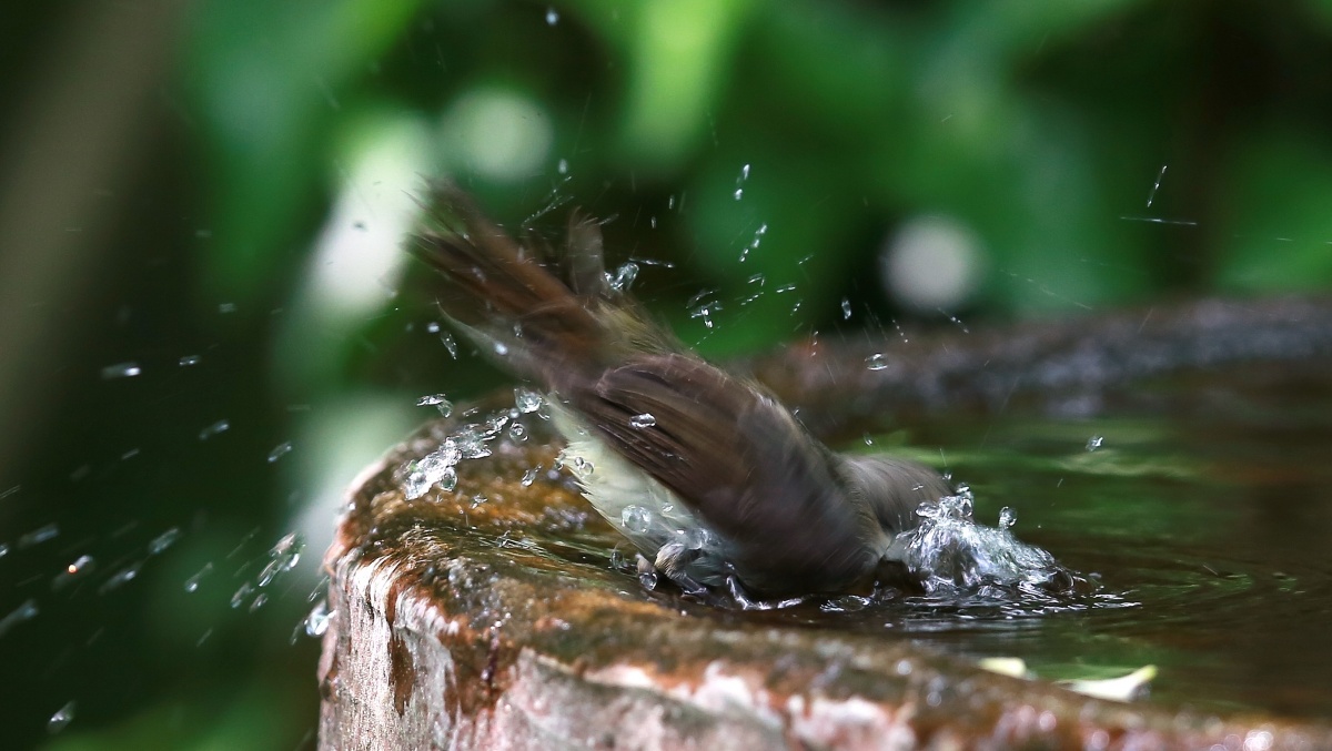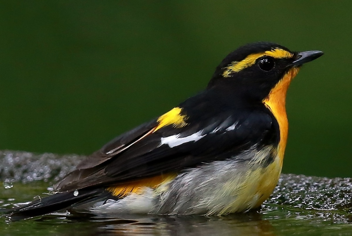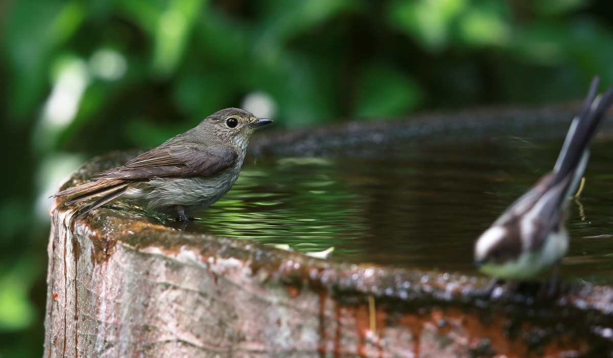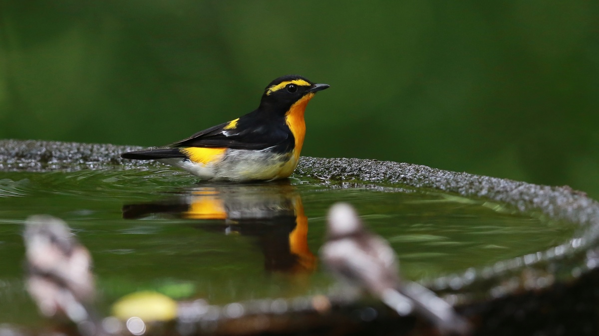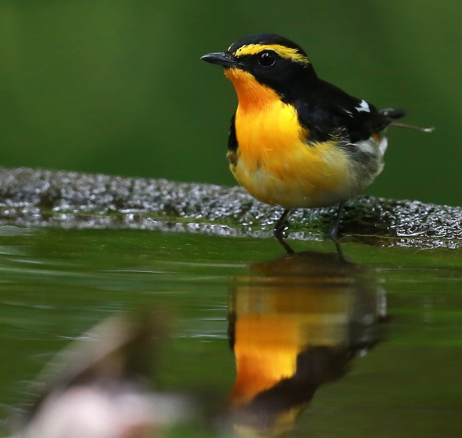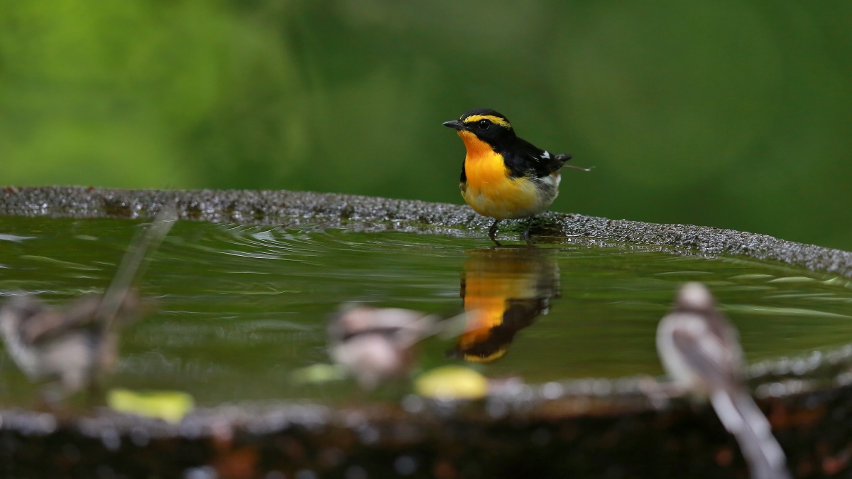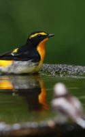 5月に撮ったお山の水場からのキビタキ♂とキビタキの♀~?……オオルリの♀かも~?見分けがつかないのですが……