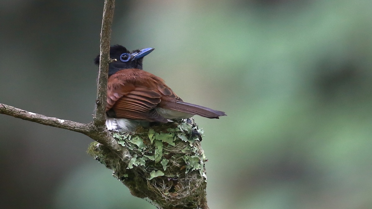 何時もは上ばかり向いて首がこっちゃう撮るのが当たり前のサンコウチョウですが、今回は少し見下ろす感じの~しかも結構”