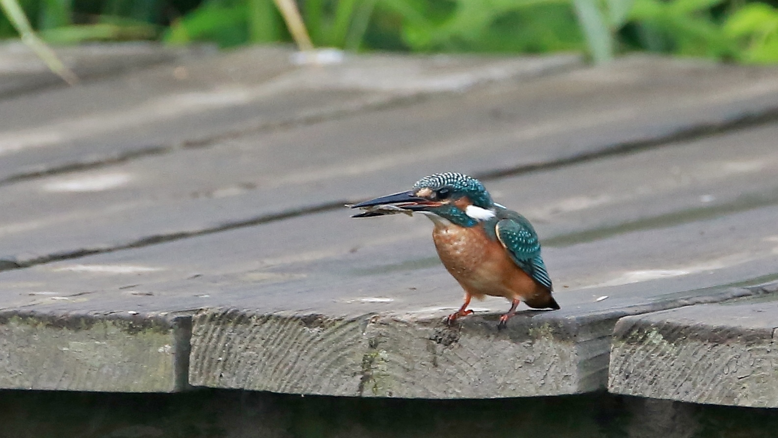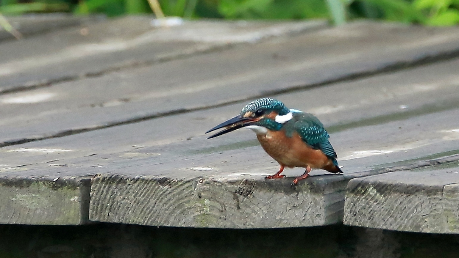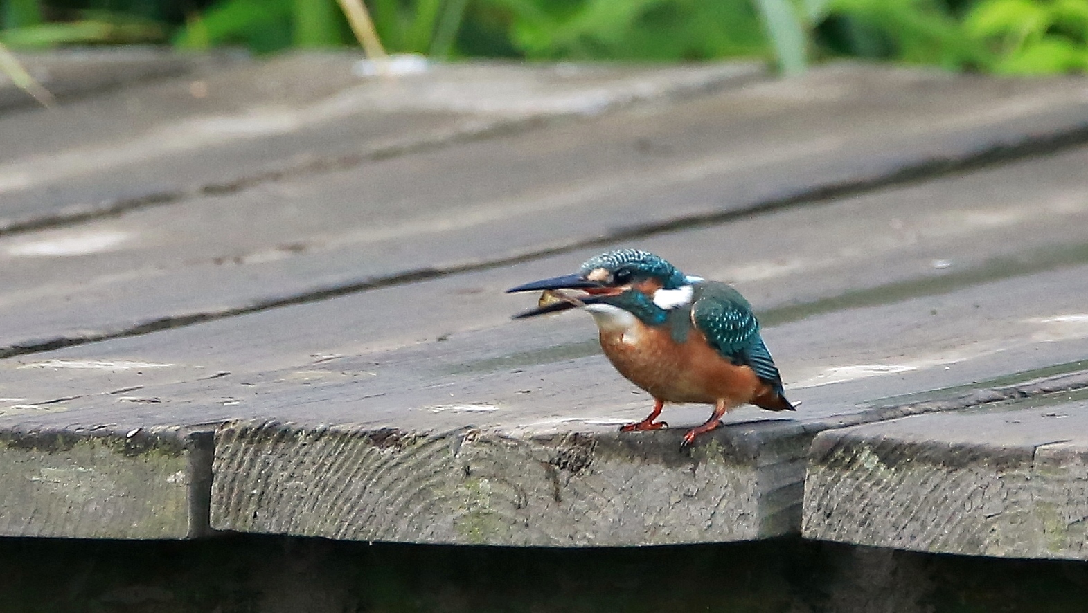 日々成長している感じで、だいぶ綺麗な色になって嘴も少し長くなって来ました。 やっと池に飛び込むのも見れたし~(笑)…小さなエビを3回もGET!