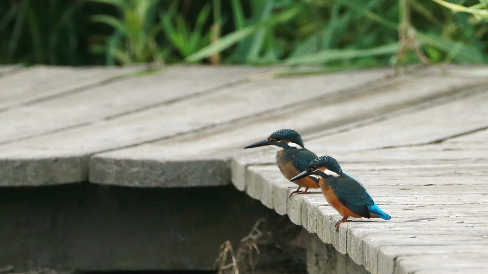 しかも途中から~真っ黒な仔が加わり2羽で仲良く餌さ捕りをしていました。 良く見ると黒いこの方はチョット”ませた女の子♀~(笑)の様です!この黒い方の仔が以外と餌捕りが上手で、最初にいた年上の仔の方が唖然とした感じででした。~(笑)