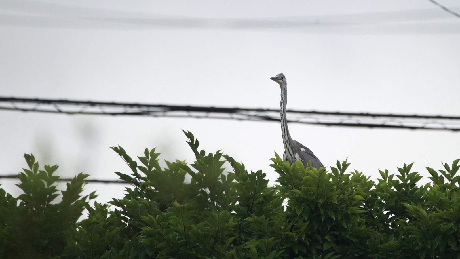 おまけ……池の脇の木の天辺に留まったアオサギの若鳥~!多分”今年産まれの仔でしょう~。