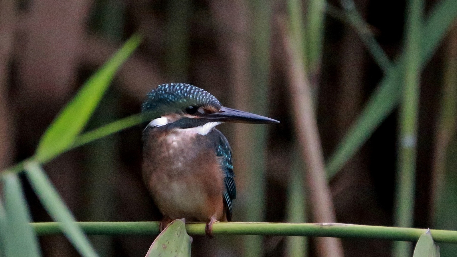 葦の陰から覗き込むと……居ました!暗かったけど近くで撮れたので、満足のいく写真です。~♪