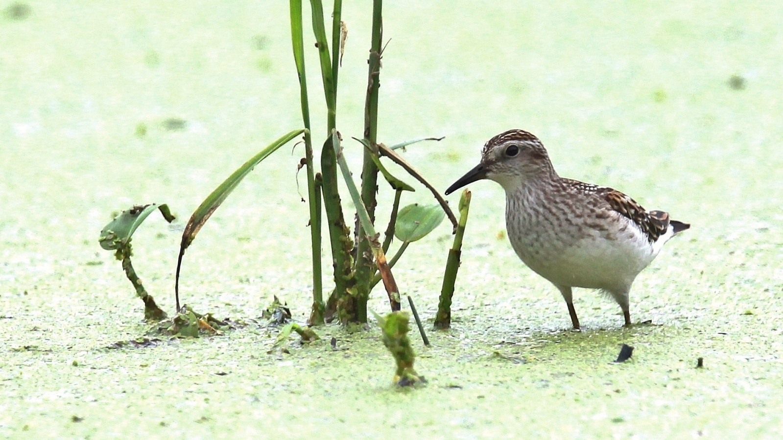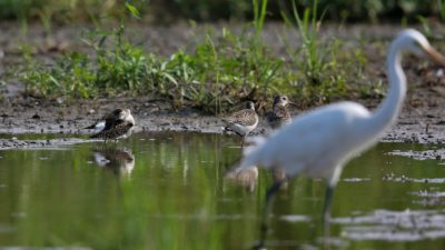 ↓~この小さなサギはヒバリシギと言うらしい~?が、別の鳥撮りCMは…ウズラシギと言っていたが?どっちだろう~!……(笑)
