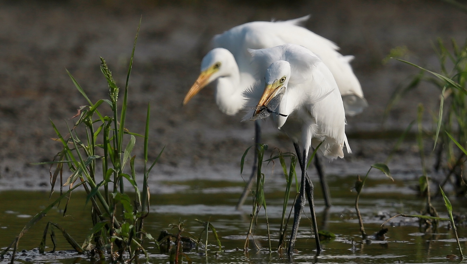 どうなる事やら~?台風もブツも今晩からが山だな!~(爆) 先日撮ったサギ類から……どうもチュウサギだか?ダイサギだか?アマサギだか?よく判りませんが多分”アマサギとダイサギかと……?