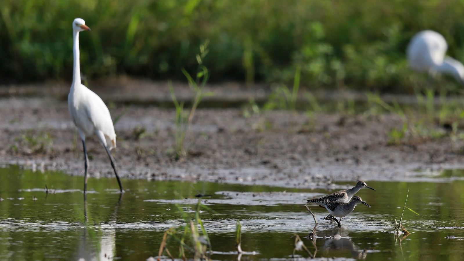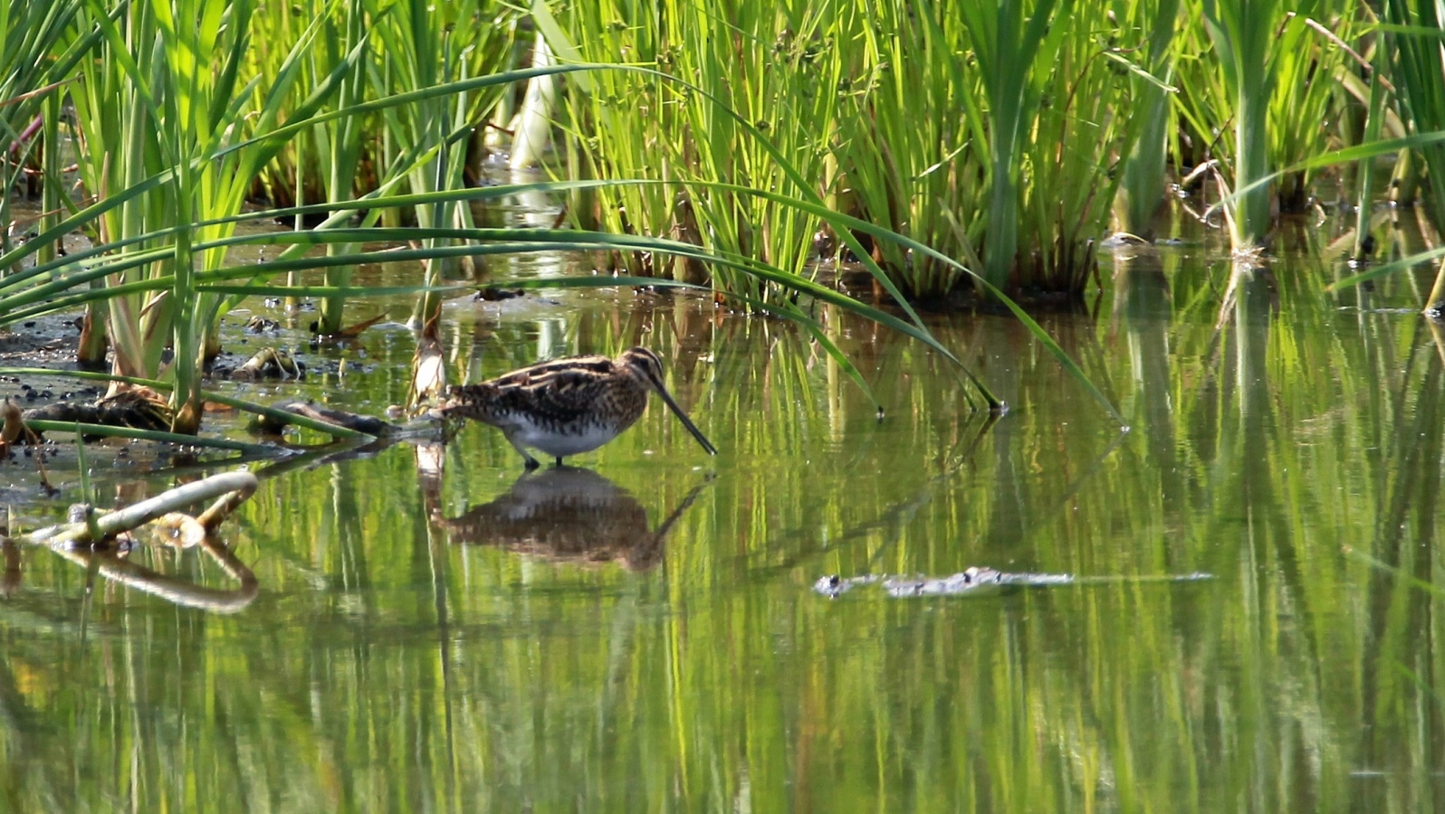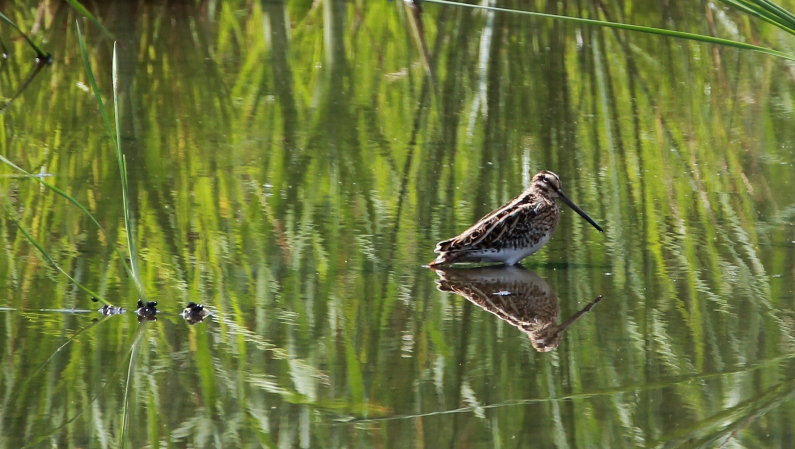 証拠写真のタシギも……。手持ちだと割りと軽いはずの600mmのスームレンズでも確実に