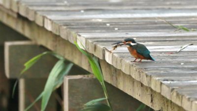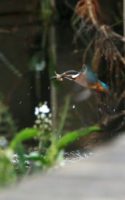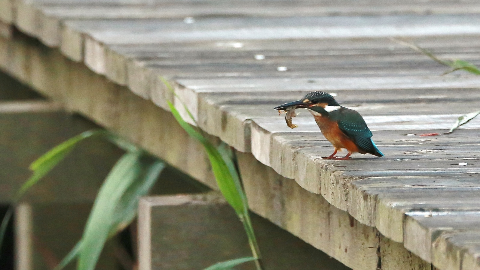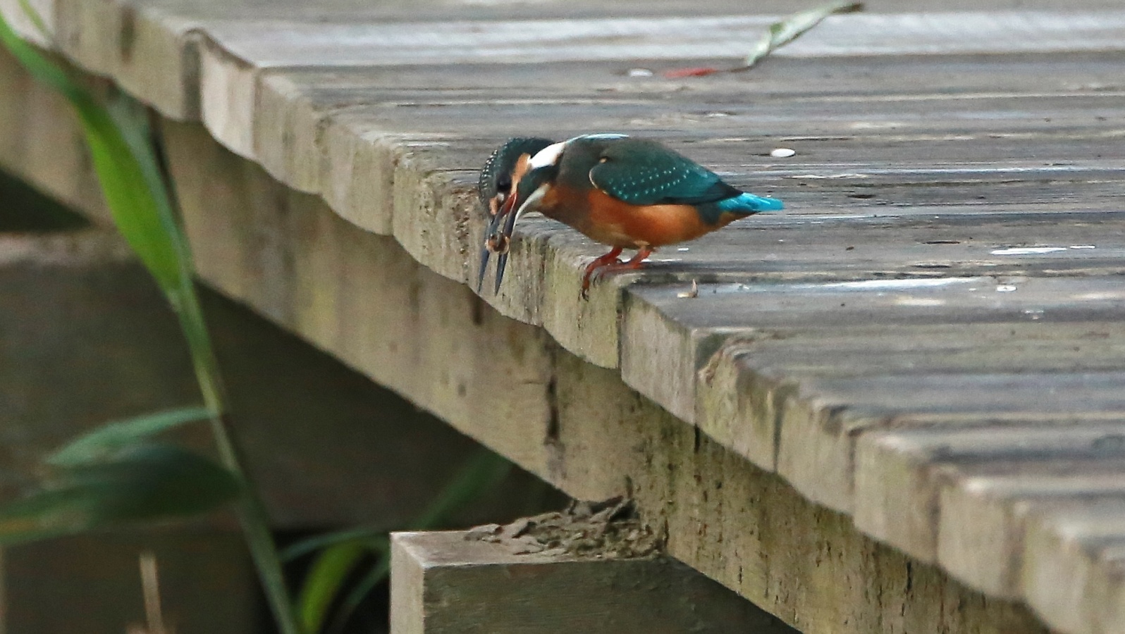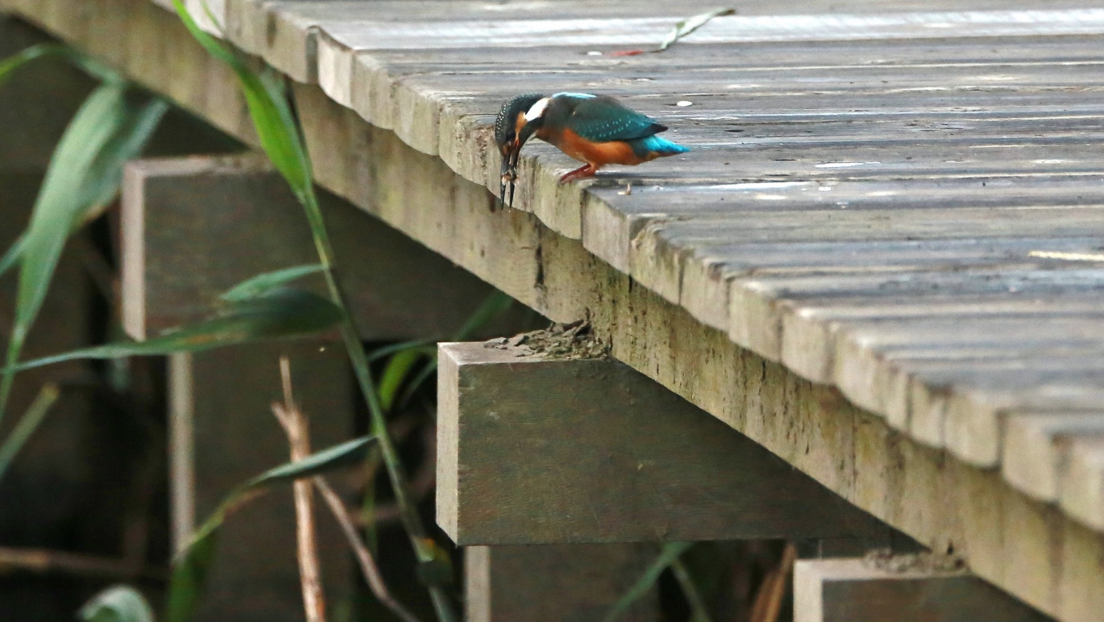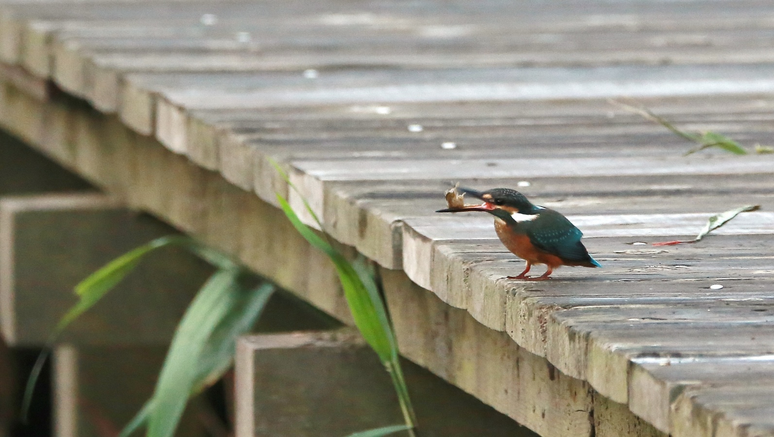 珍しく、早朝散歩と休憩を終えた後の鳥撮りで、池に行った時には既に翡翠君が居ました~♪ しかも木道の陰で一回飛び込んで大きめな海老をGET!散々料理していたら頭から肝心な身が離れ池に落ちてしまい~(笑)焦って探して再び拾えました~♪ 空っぽになった頭の部分だけを銜えたままで真剣に池を覗きこむ姿が笑わせます!~(爆)