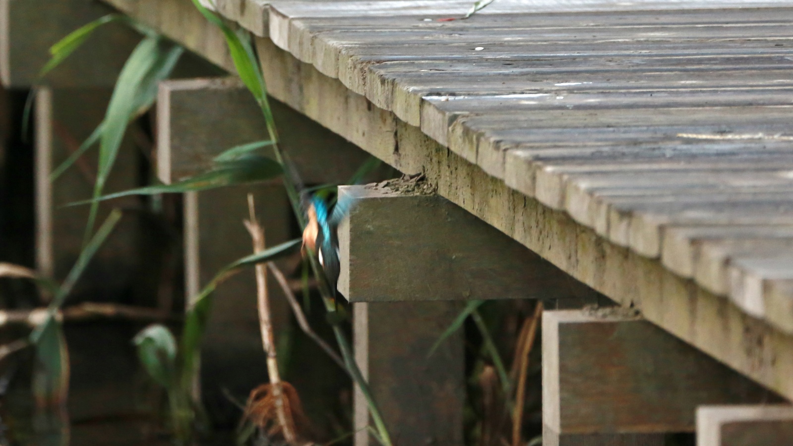 この仔は今年この池に来る翡翠の仲では唯一割りと解りやすく鳴いてくれる雌♀で、まだ足に黒さも残っている若い♀で……この仔がこの池に居ついてくれるといいんだけどなぁ~……。
