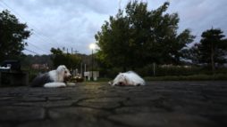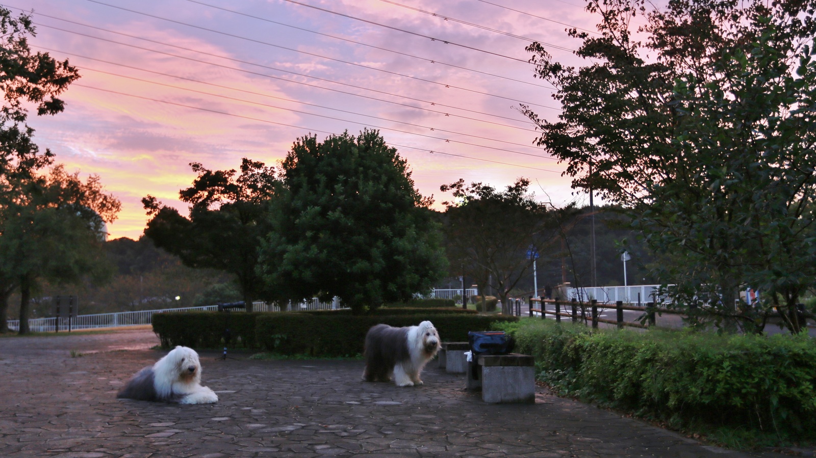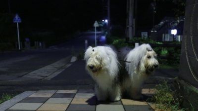鳥撮り前の相変わらず真っ暗な中でのワン達の散歩!~予報では寒くなると言っていたので……寒いと思ってトレーナーを着て歩いたら意外と暑い早朝でした。