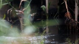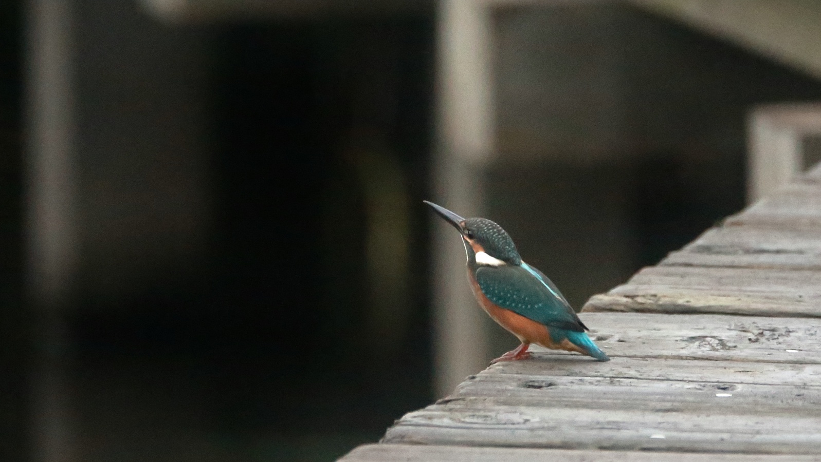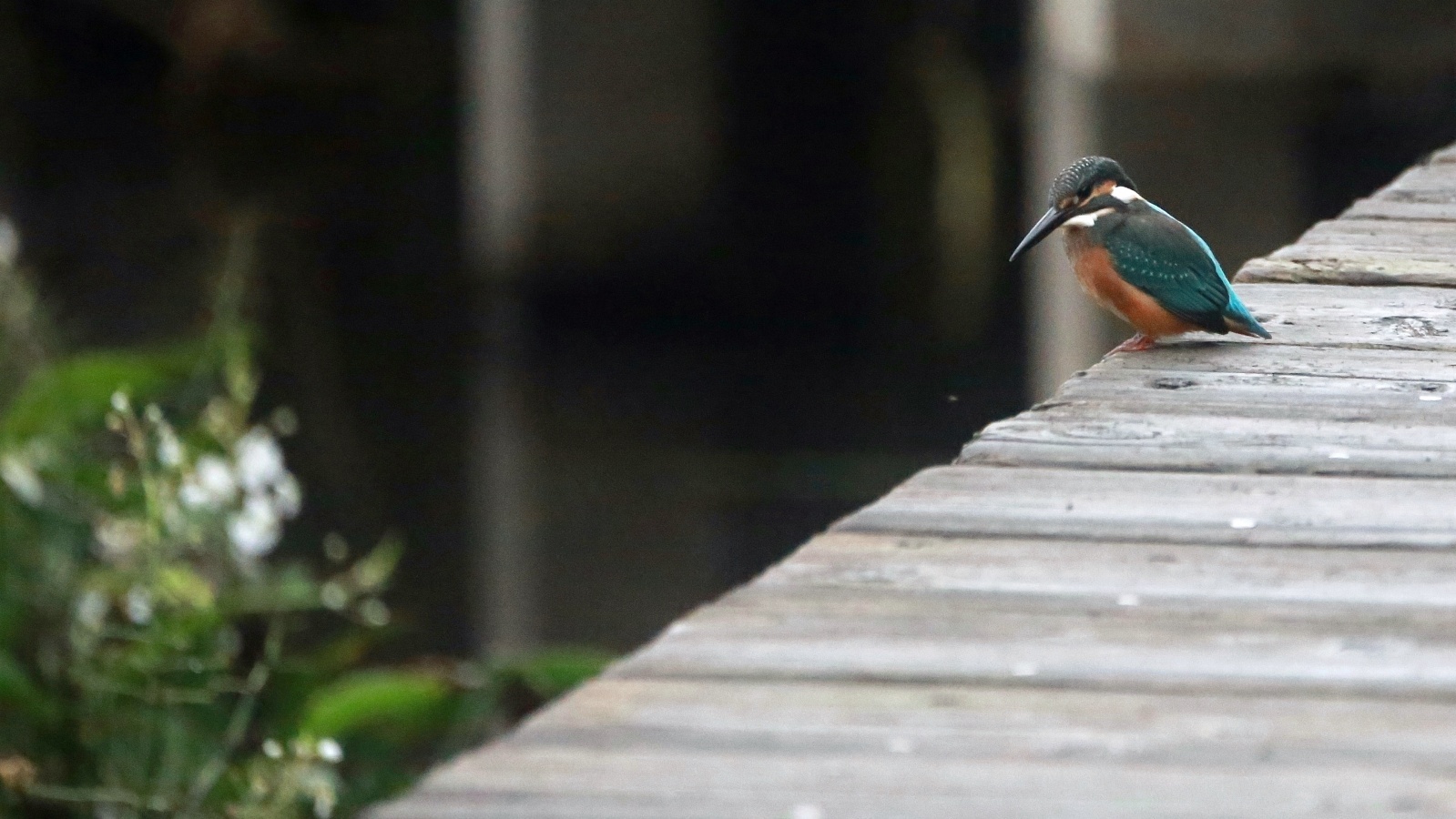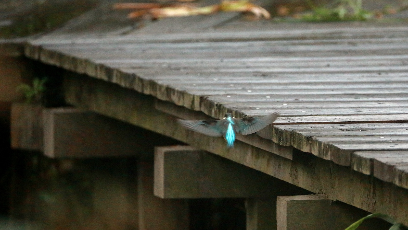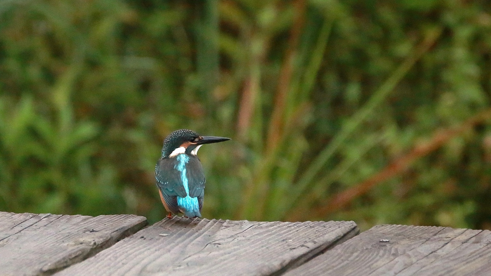急に~上を気にしたと思ったら、アオサギが木道に舞い降りました!……でも少し離れていたので意外に気にしない翡翠君です。 ……そんな事より~ ごはん!ごはん!…(笑)