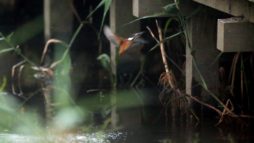 昨日のかわせみと同じ仔♀だと思って撮っていたのですが、少し動きが違った感じがしでカメラの液晶画面を拡大して見ると……今朝の翡翠は雄(♂)の翡翠君でした!
