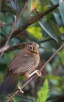 公園の池に直ぐ近くの森の中で今年生まれたガビチョウがよく遊びに来ます……一時は多分”親鳥を入れて6~7羽で現われ~最近は2~3羽で賑やかに鳴いています。