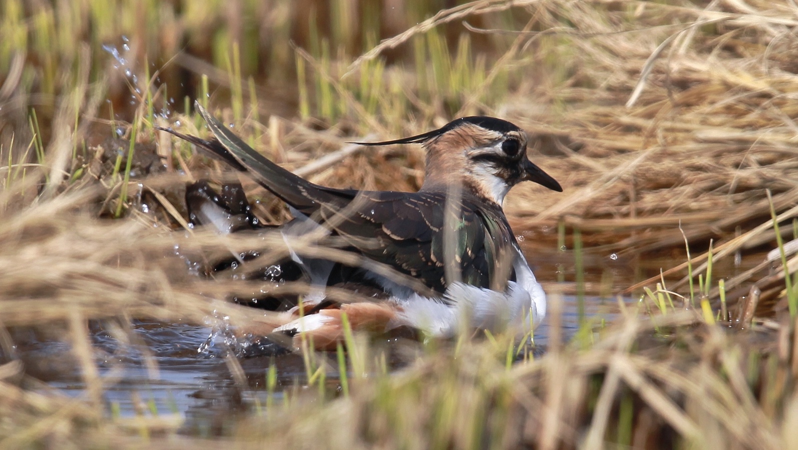 ネタの無いので(笑)以前撮ったタゲリの羽根繕いと水浴びの写真を~
