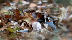 木に留まると派手ですが落ち葉の中に居ると保護色で結構”判り難い感じです。