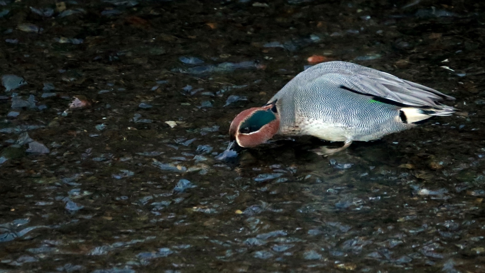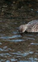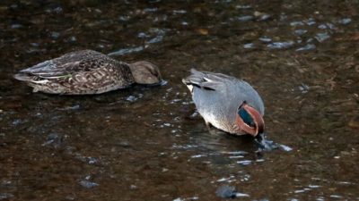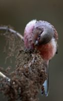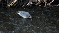 ◎ 公園の池はすっかり凍って……川で暫らく待ちましたが直ぐにタイムアウト!(汗) 何てったって、今が一番~陽の昇るのが遅い時期だからなぁ~~ 今朝撮った食事中のコガモと、先週の木曜日に撮った林道でのベニマシコ、これも食事中の在庫を~♪