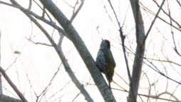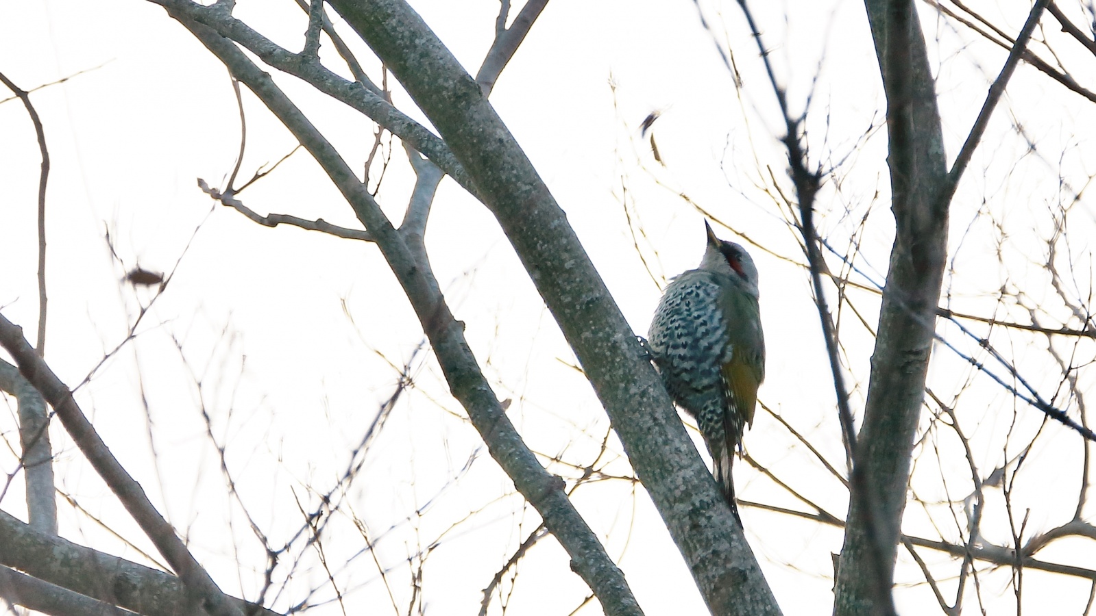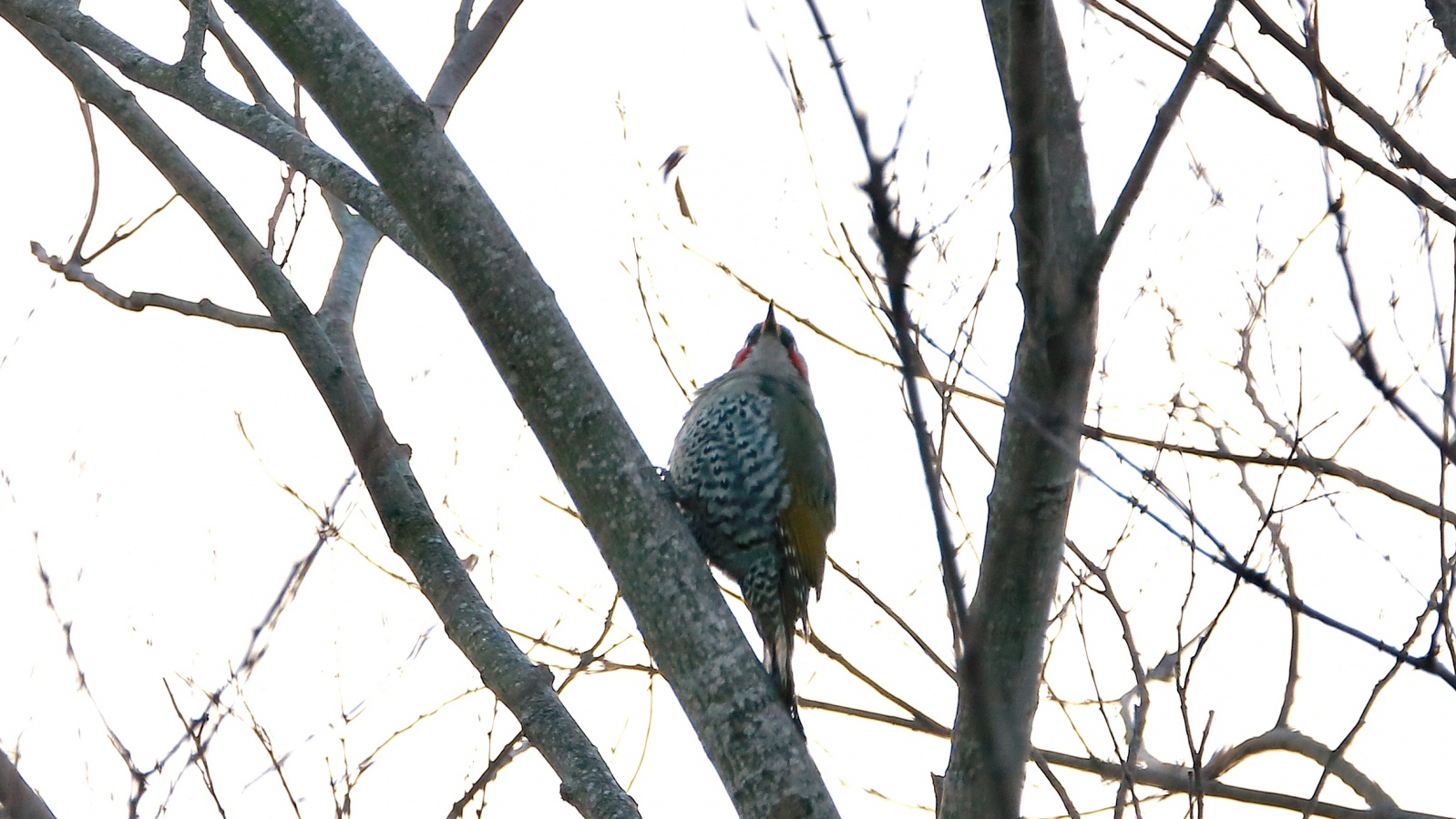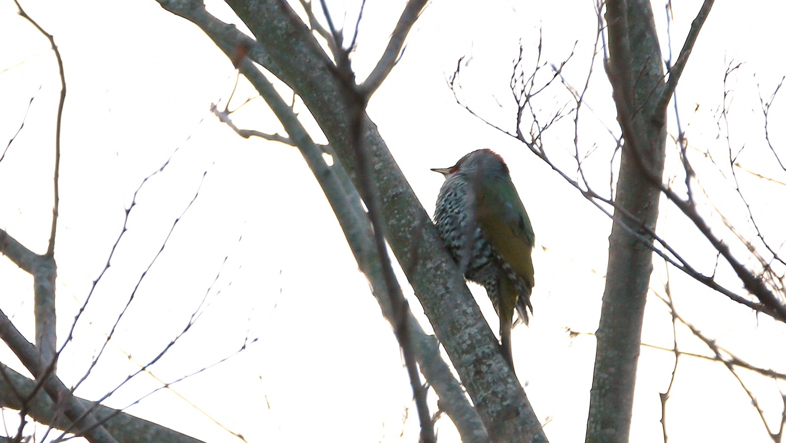 今朝もリベンジになんとか綺麗にアオゲラを撮ろうと試みたのですが、兎に角遠いし暗いし逆光だし!~(爆)…ってオヤジの腕じゃあ~中々旨く撮れませんね…………。