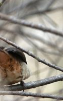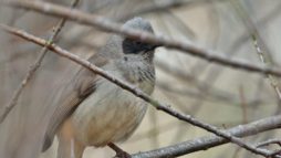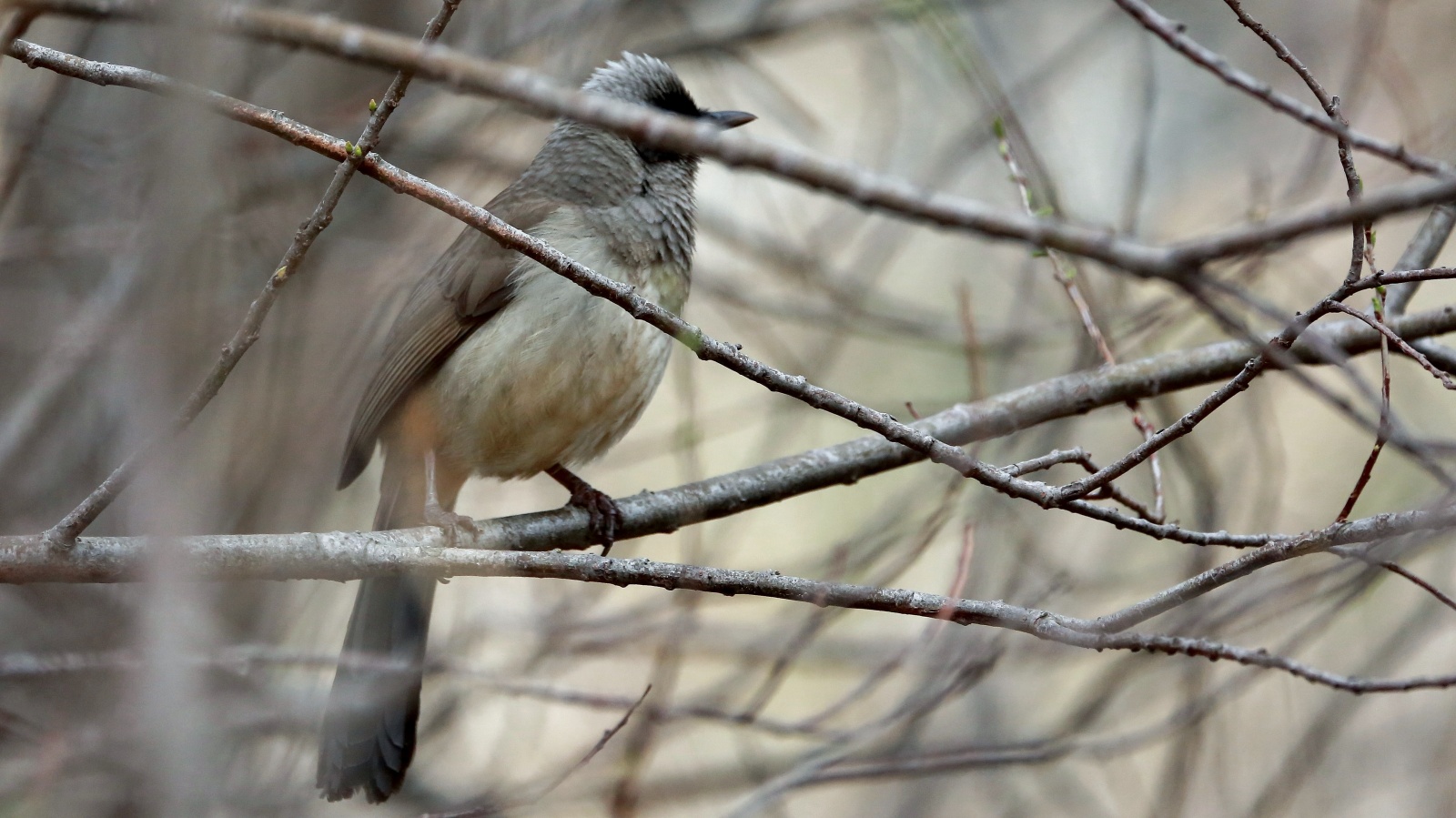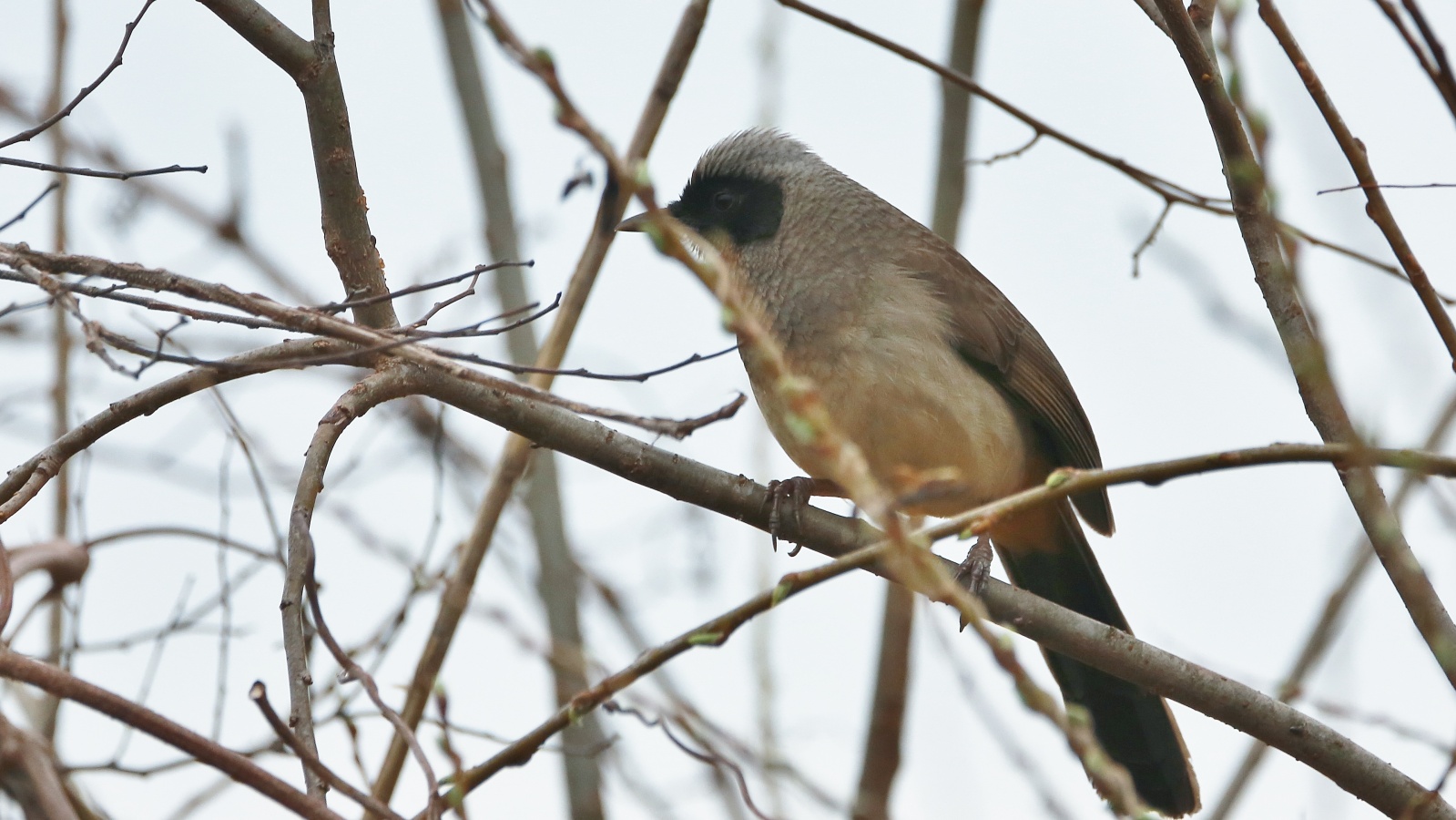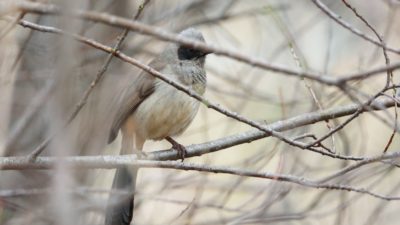 去年からこの公園に住み着いて~多分”繁殖もしている様な感じのまだ全国的にもまだ珍しいうちかな?~ガングロ(カオグロ)ガビチョウ……もう完全に鳴き声で普通の沢山居るガビチョウとの聞き分けが出来るようになってきました。~(笑) 今朝も鳴き声が聞こへ…声から探して見つけられましたが、なかなか小骨(小枝)~(笑)の無いいい開けた場所に出てくれませんでした。 ……が、早朝鳥撮りの限られた時間ギリギリまで粘って、やっと近くで枝被りではありますが撮れました~♪ まあその内に枝被りもない綺麗なガングロも撮れるでしょう~!