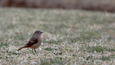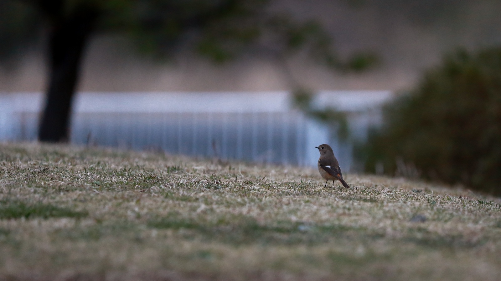 今朝はそろそろ帰り支度の準備かジョウビタキも薄暗い散歩中に現われました。鳥を撮るにはだいぶたらない散歩用の70-200mmのレンズで~