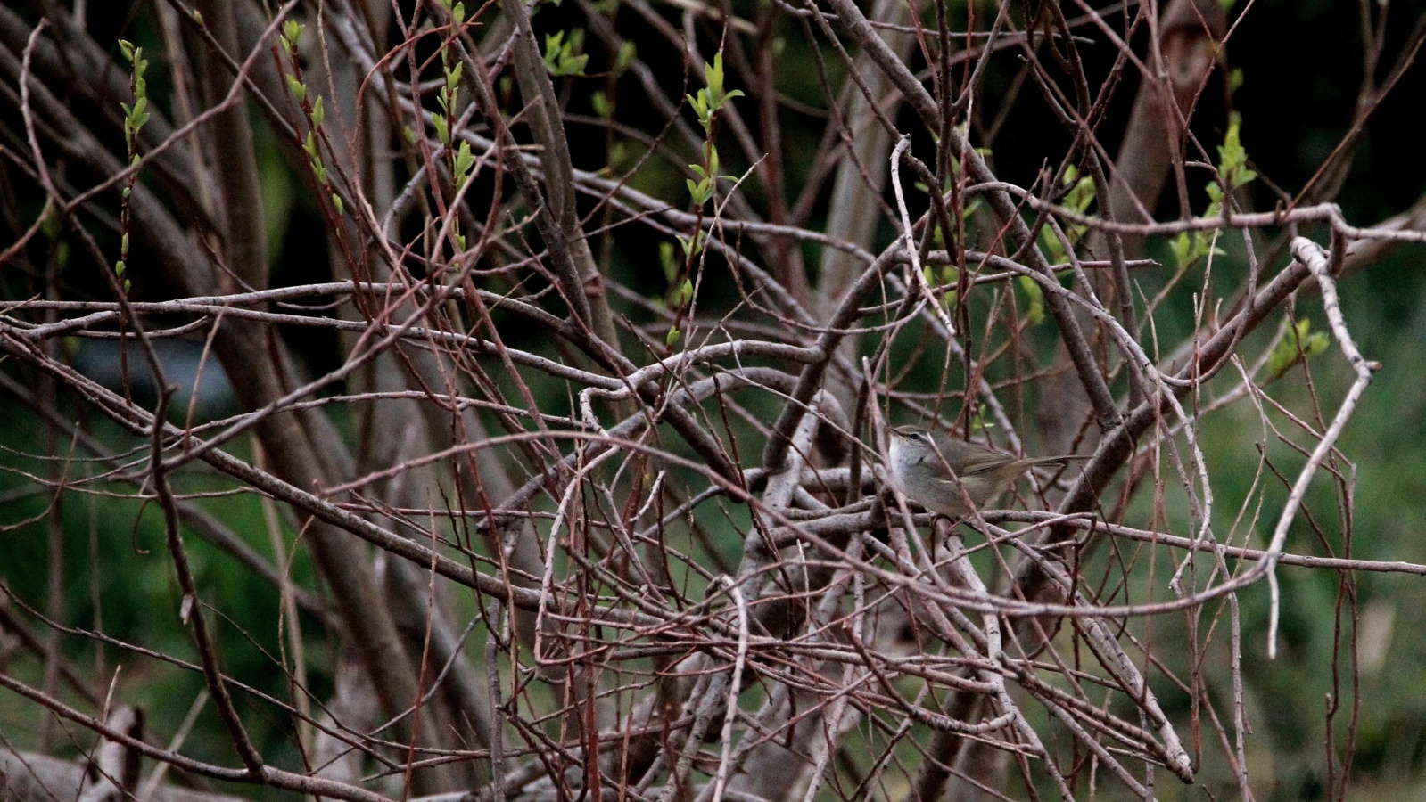 ◎一昨日の早朝散歩のあとで公園で撮った写真から~遠くですがウグイスも少し上のほうに出てくるようになって来ました。