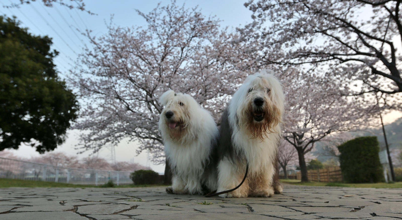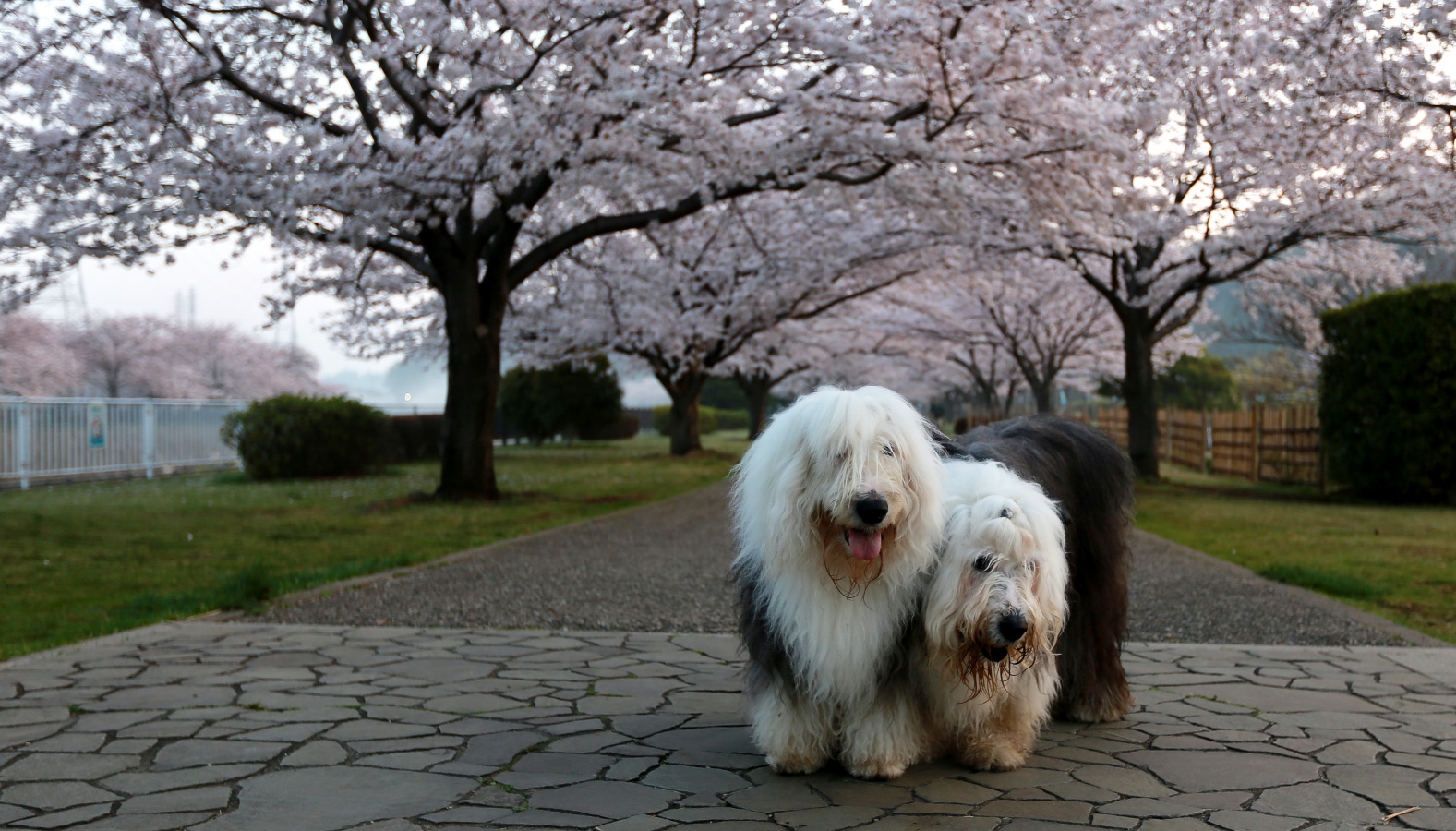 ◎ 昨日のワン達と公園の桜(ソメイヨシノ) …と、もう散り始めている我が家の目の前の桜~♪