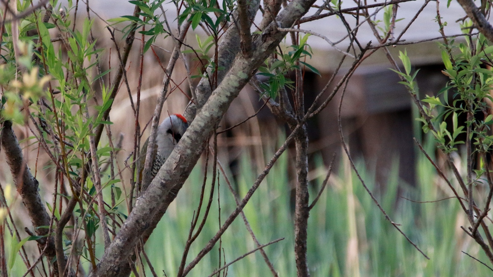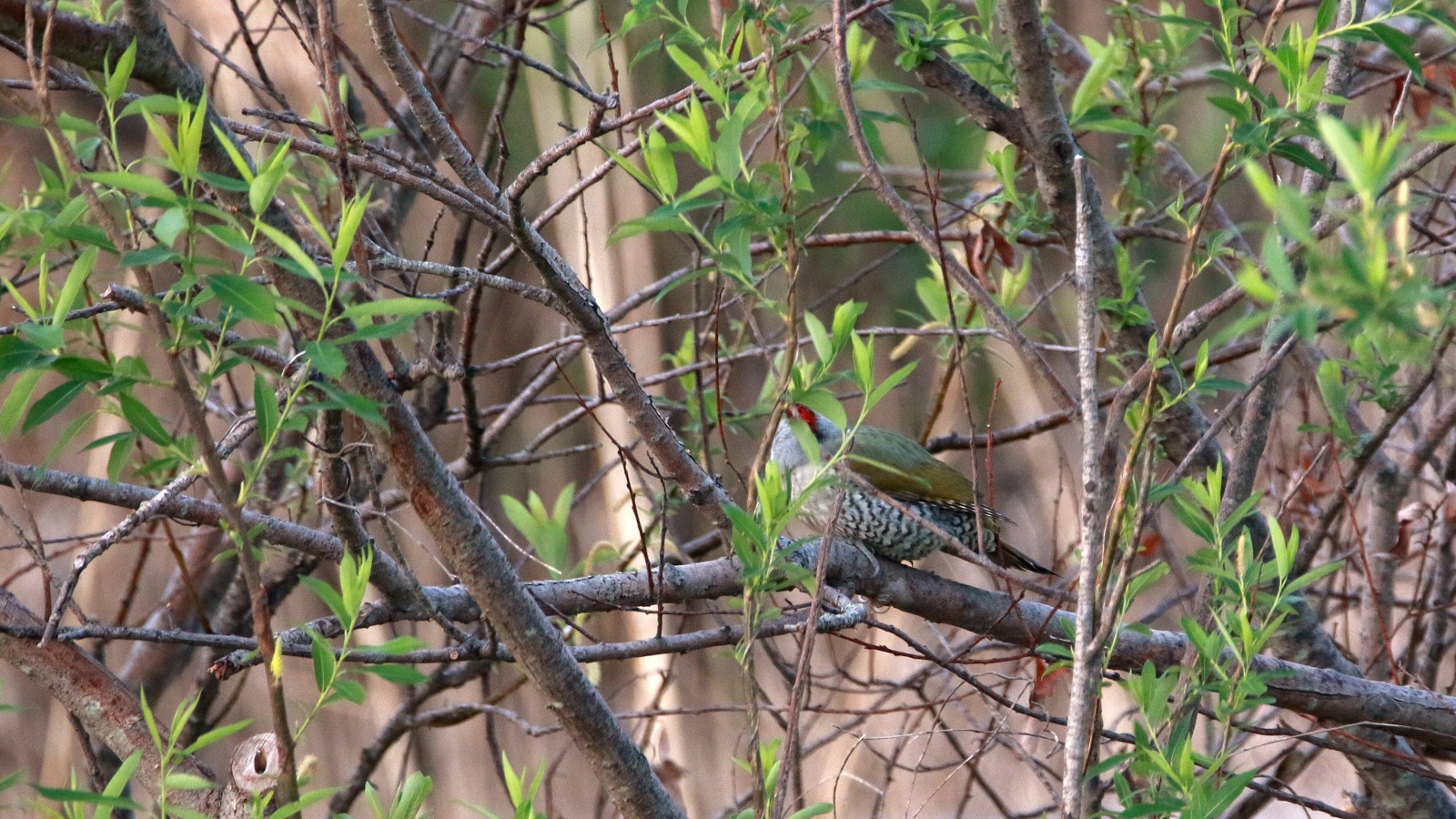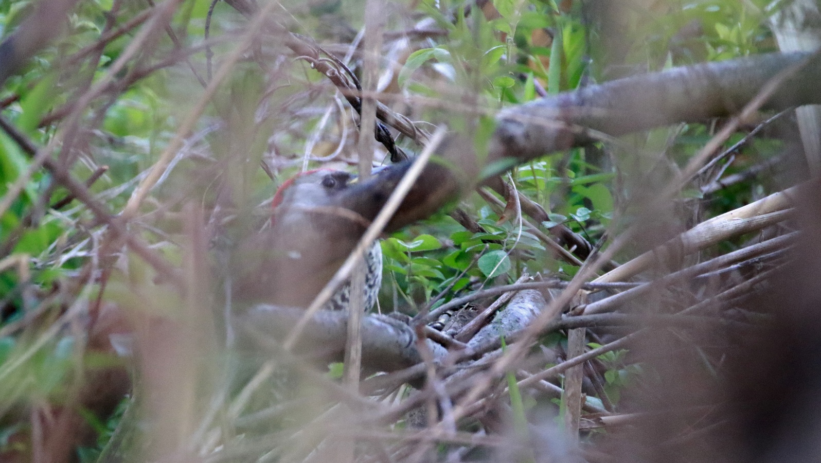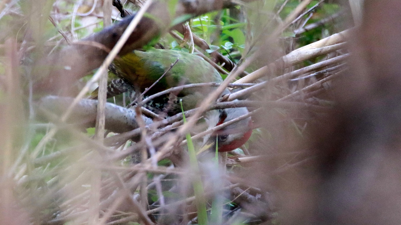 最初はアオゲラが2羽!…でもなかなか木々の根元から出てくれなくて最低な証拠写真だけ!~(笑)