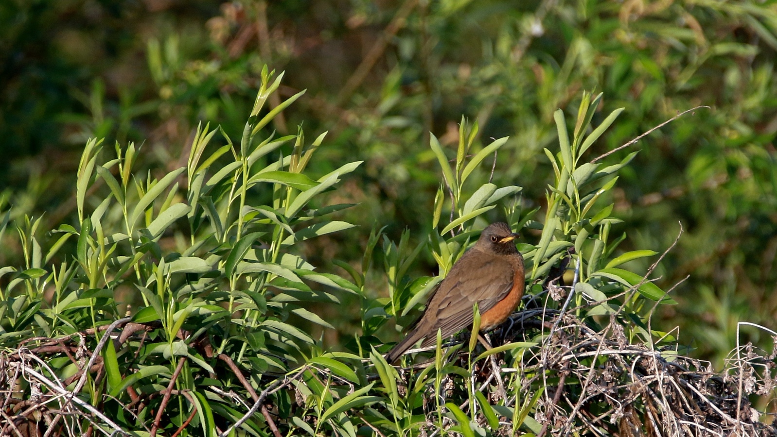 でもその後ガングロガビと普通のありふれたガビチョウ……もう旅立ってしまったかと思っていたオオアカハラもまだ居ました。~♪
