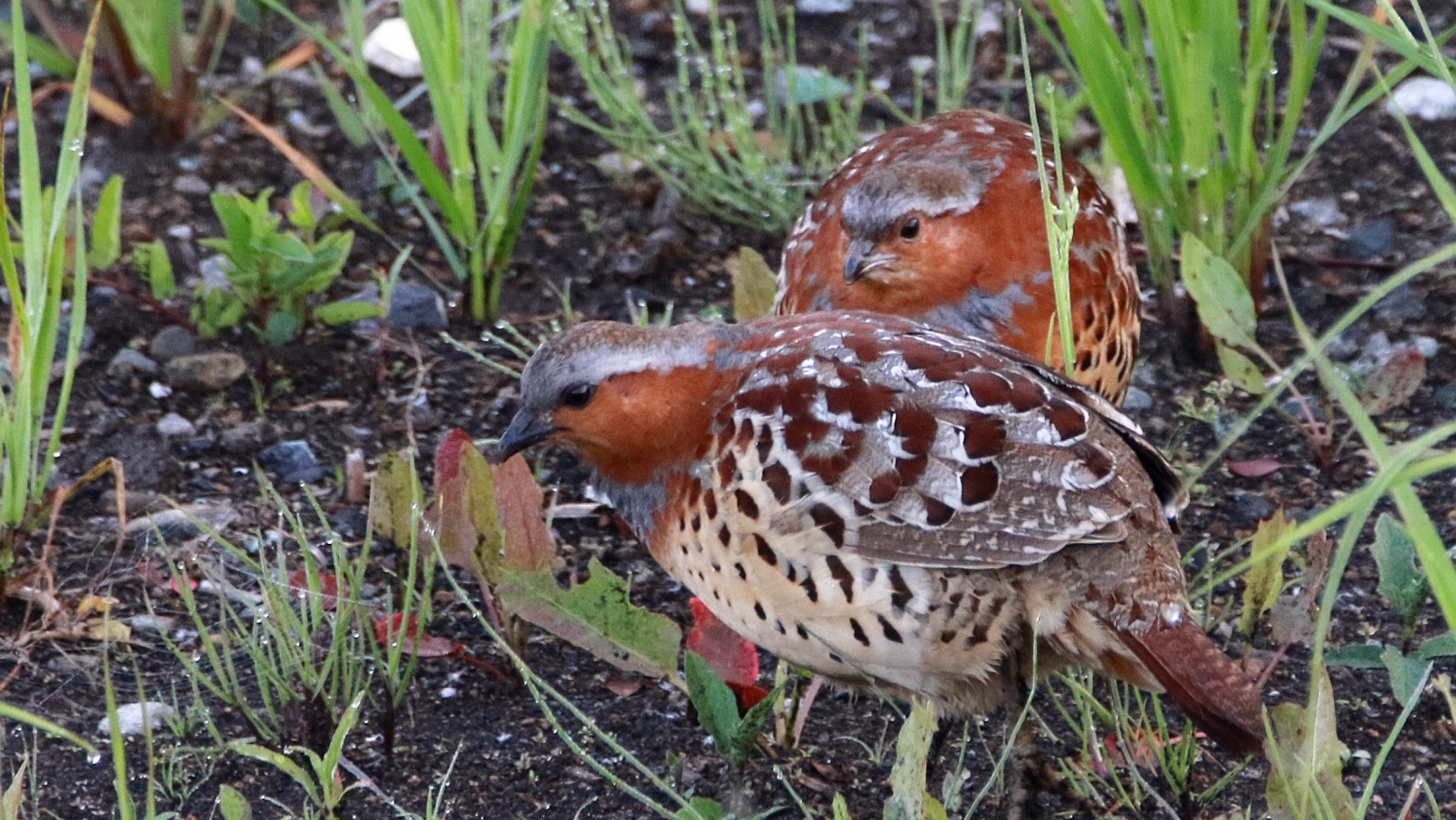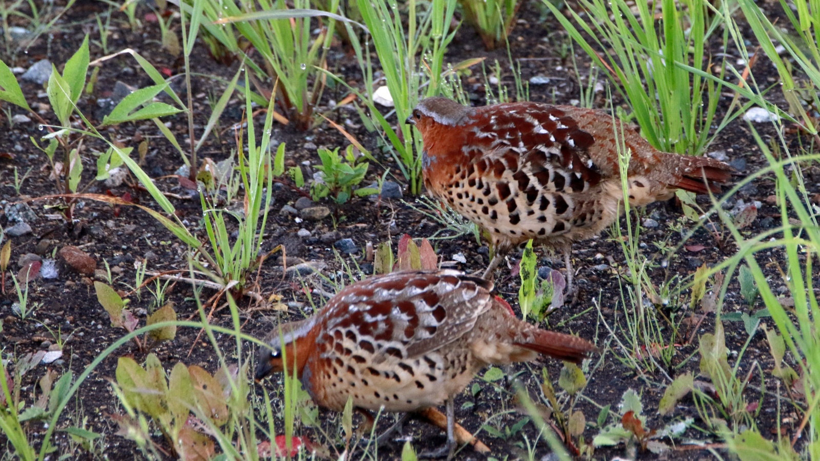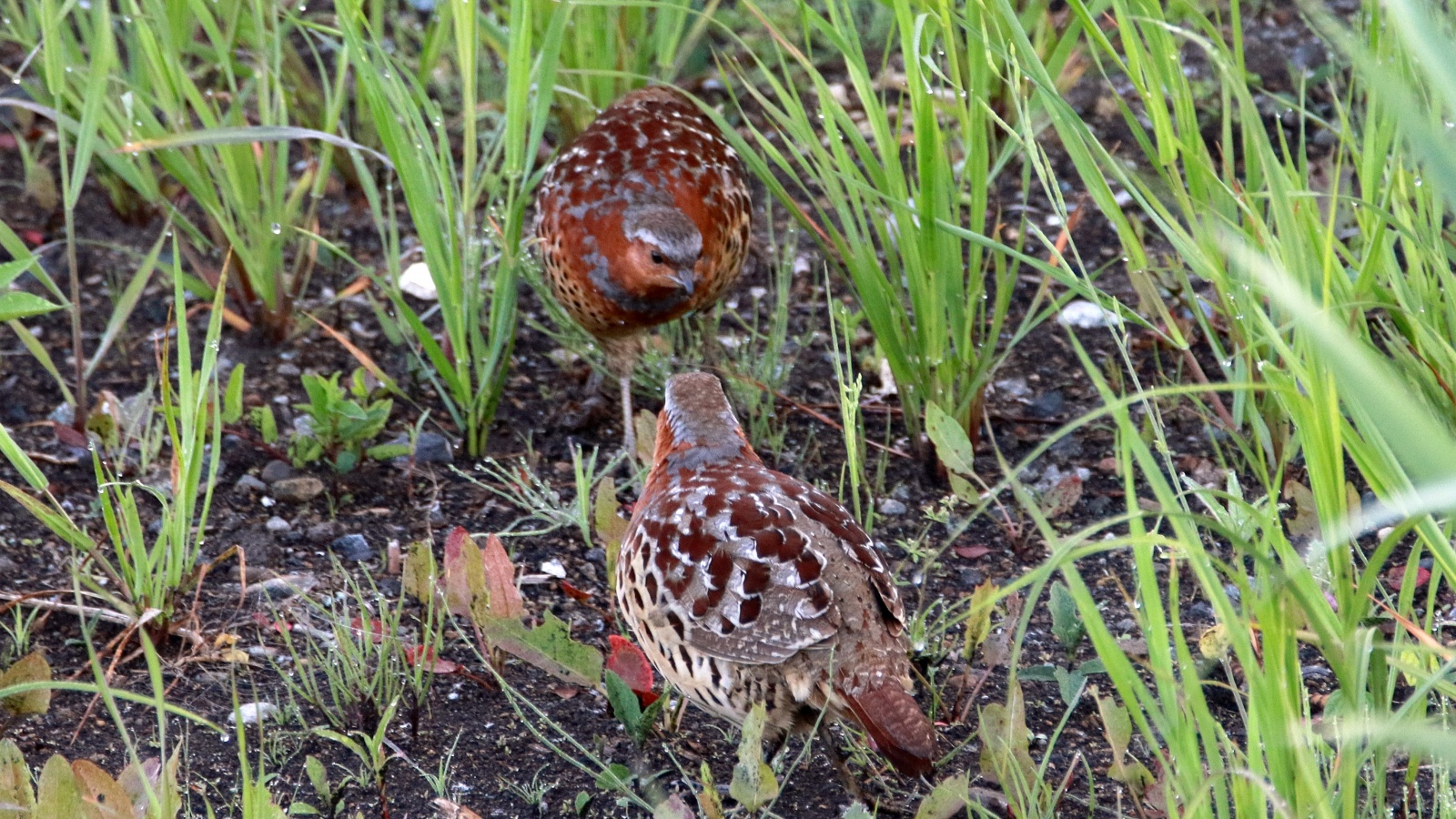 ◎今朝の公園でのコジュケイ。  …♂♀で少し明るい所に出て来てくれました。~♪