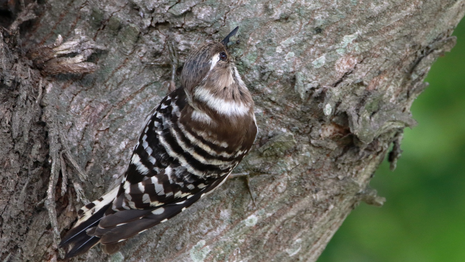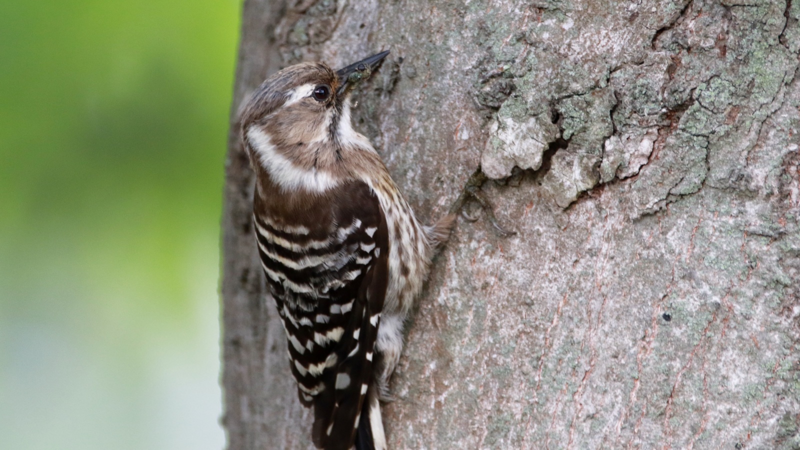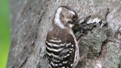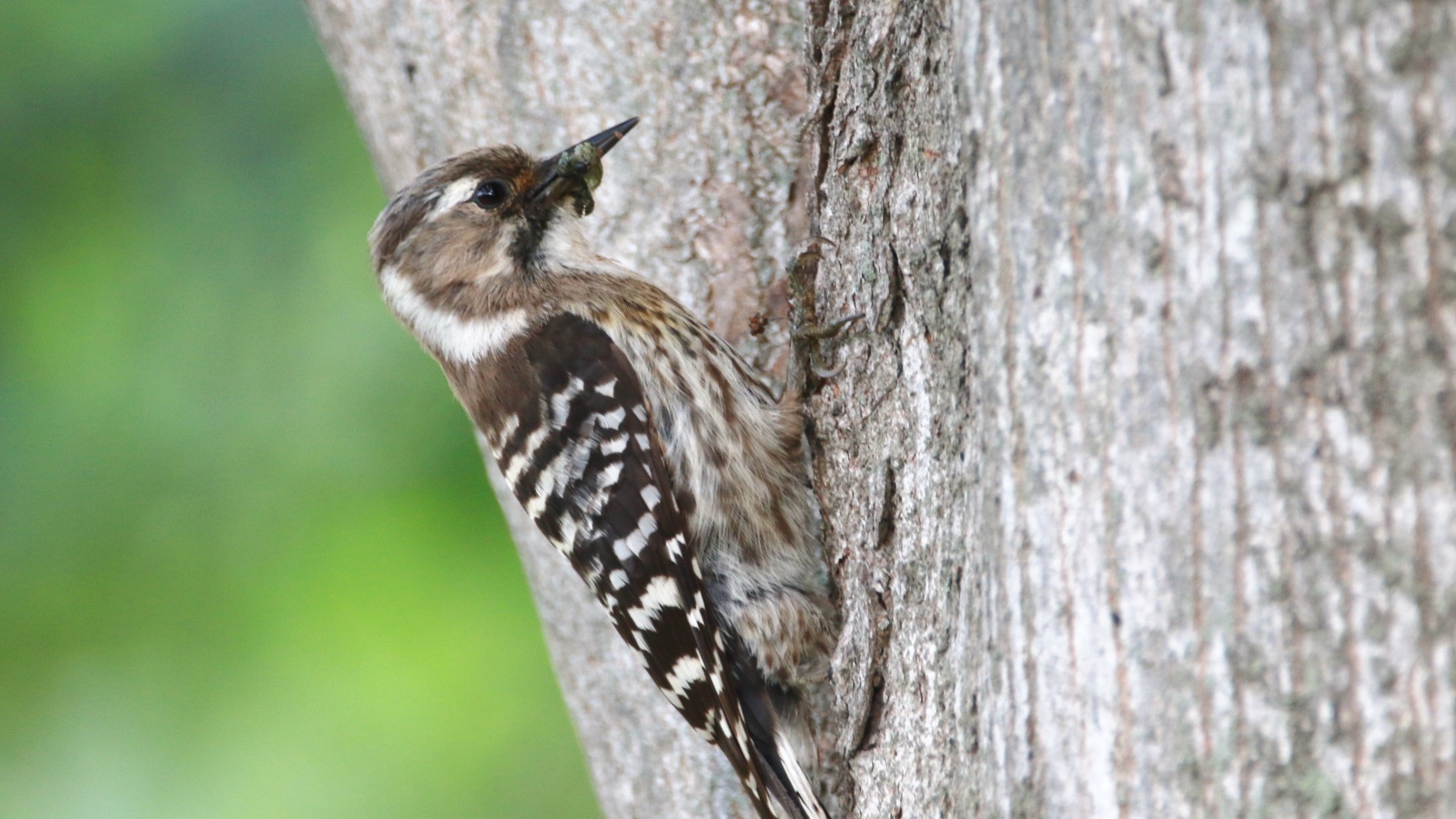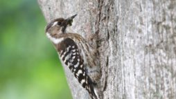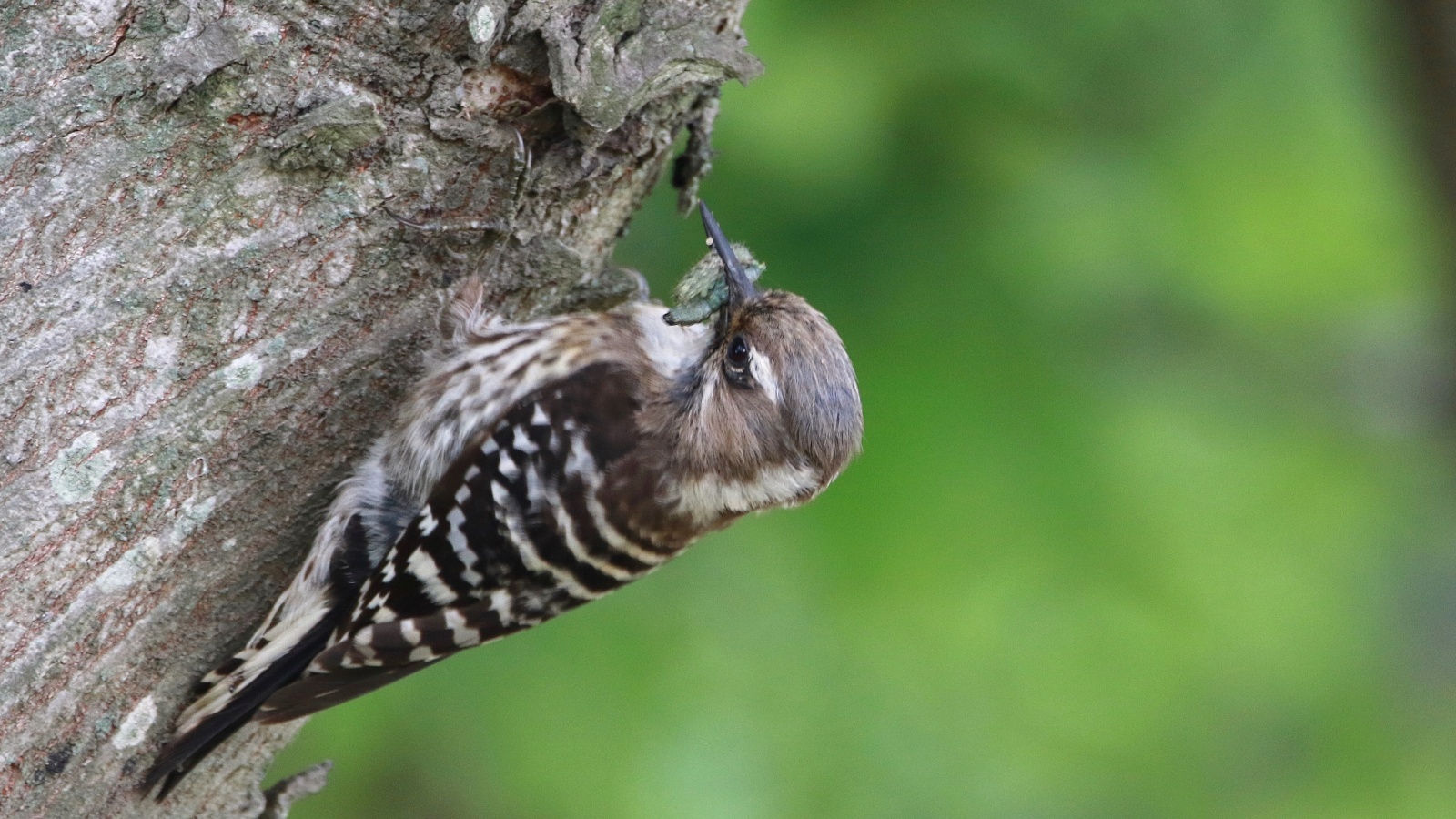 ◎暖かくなって虫が多くなって来たせいか?かなり沢山の虫を啄ばんでいました……昨日の早朝の公園のコゲラも虫を一杯銜えて……巣に運んでいる感じでした。