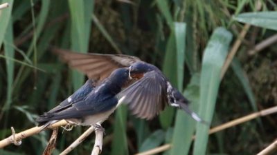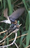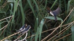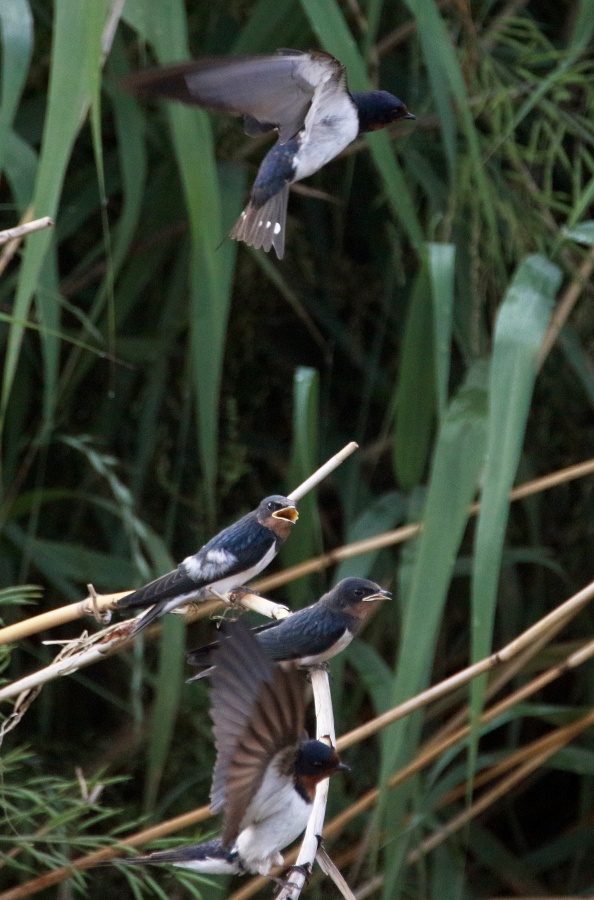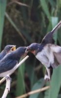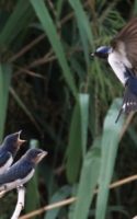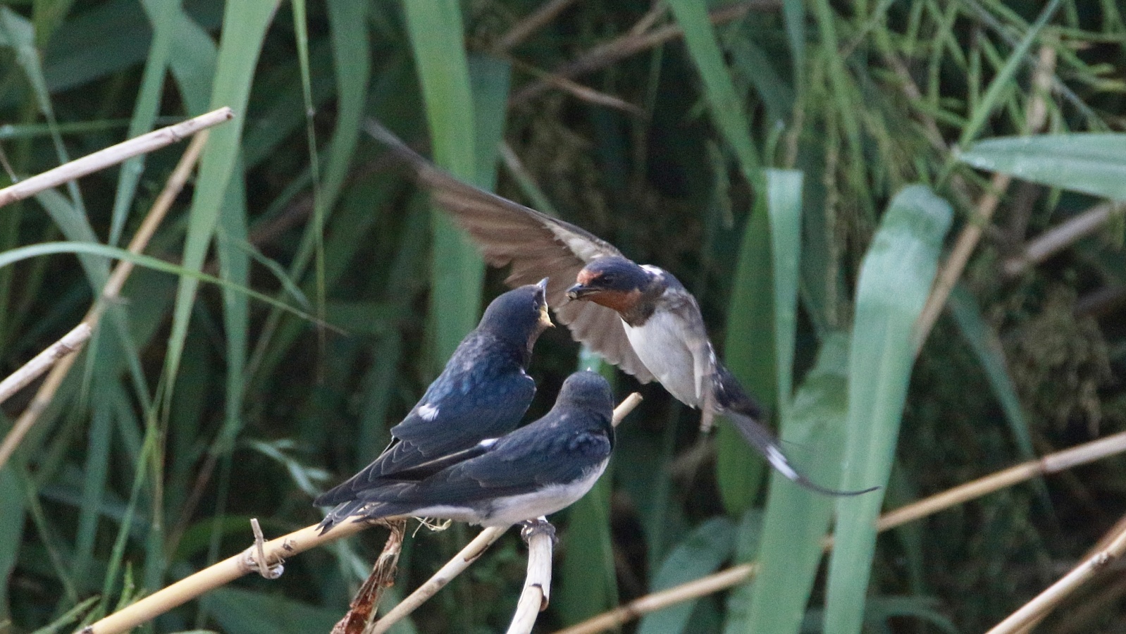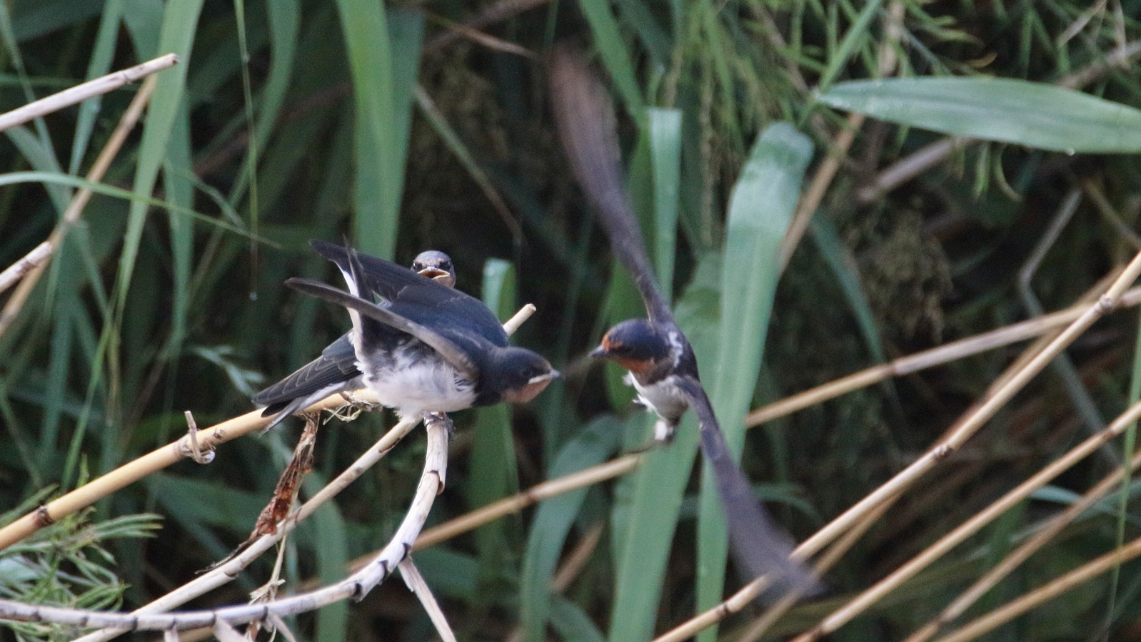 去年は同じ場所でまだ幼いツバメの雛の給餌がとれましたが、今年はだいぶ育っているくせに今だ給仕を受けている2羽の