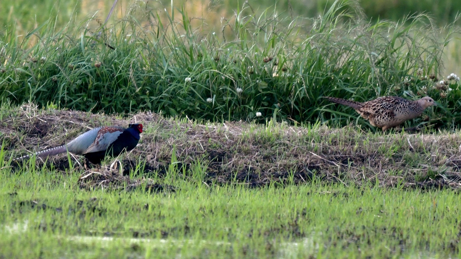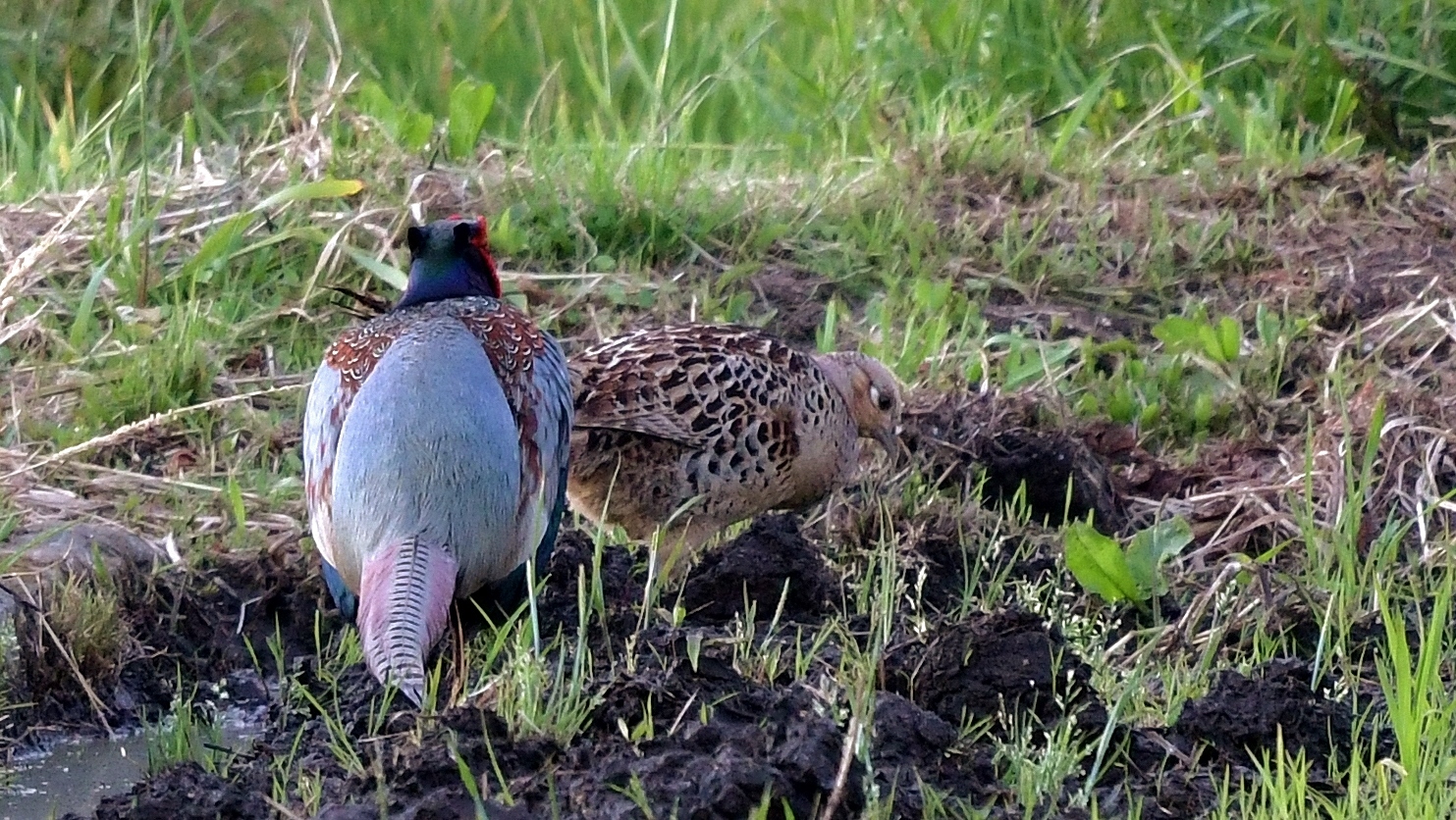 珍しく♂♀揃って出ていたキジと……4月の末に見かけた雛とは別の場所の……