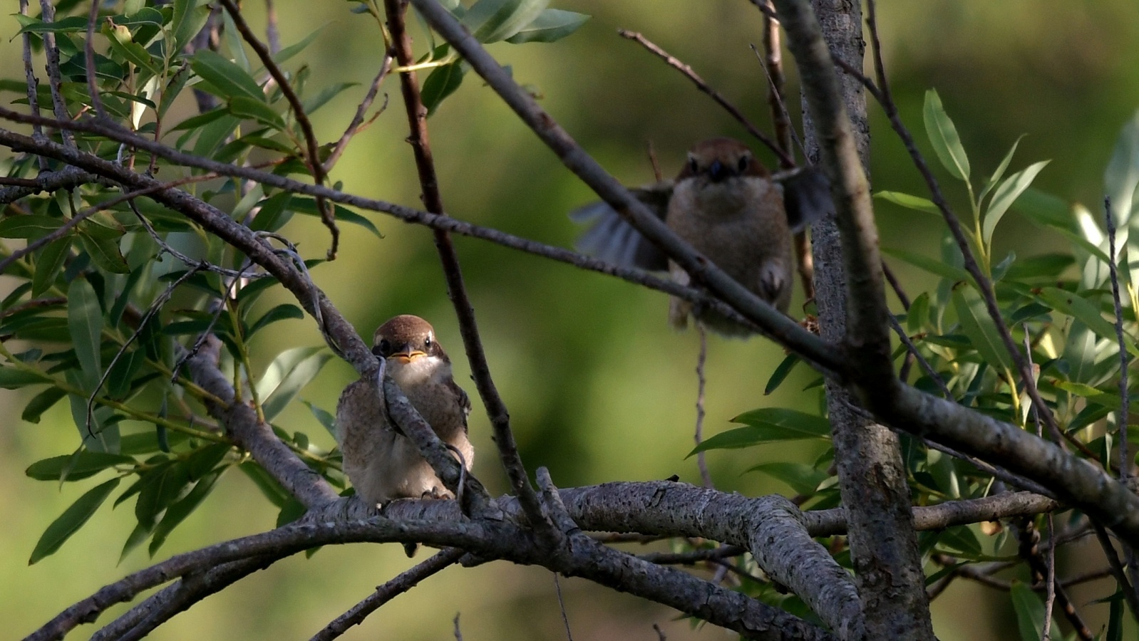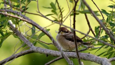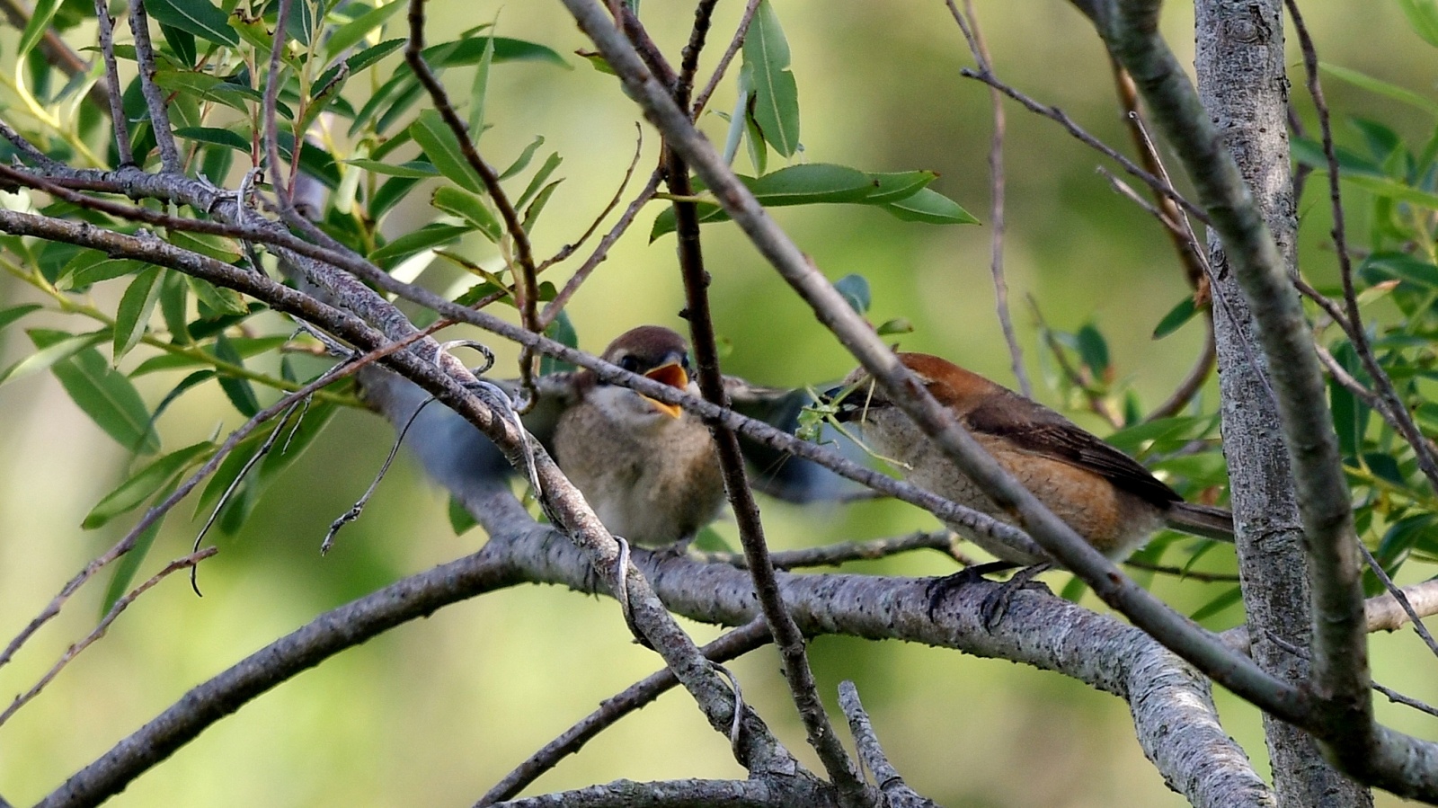もうすでにバラけてしまったらしいモズの雛への(…チョット残念!)給餌が撮れました。