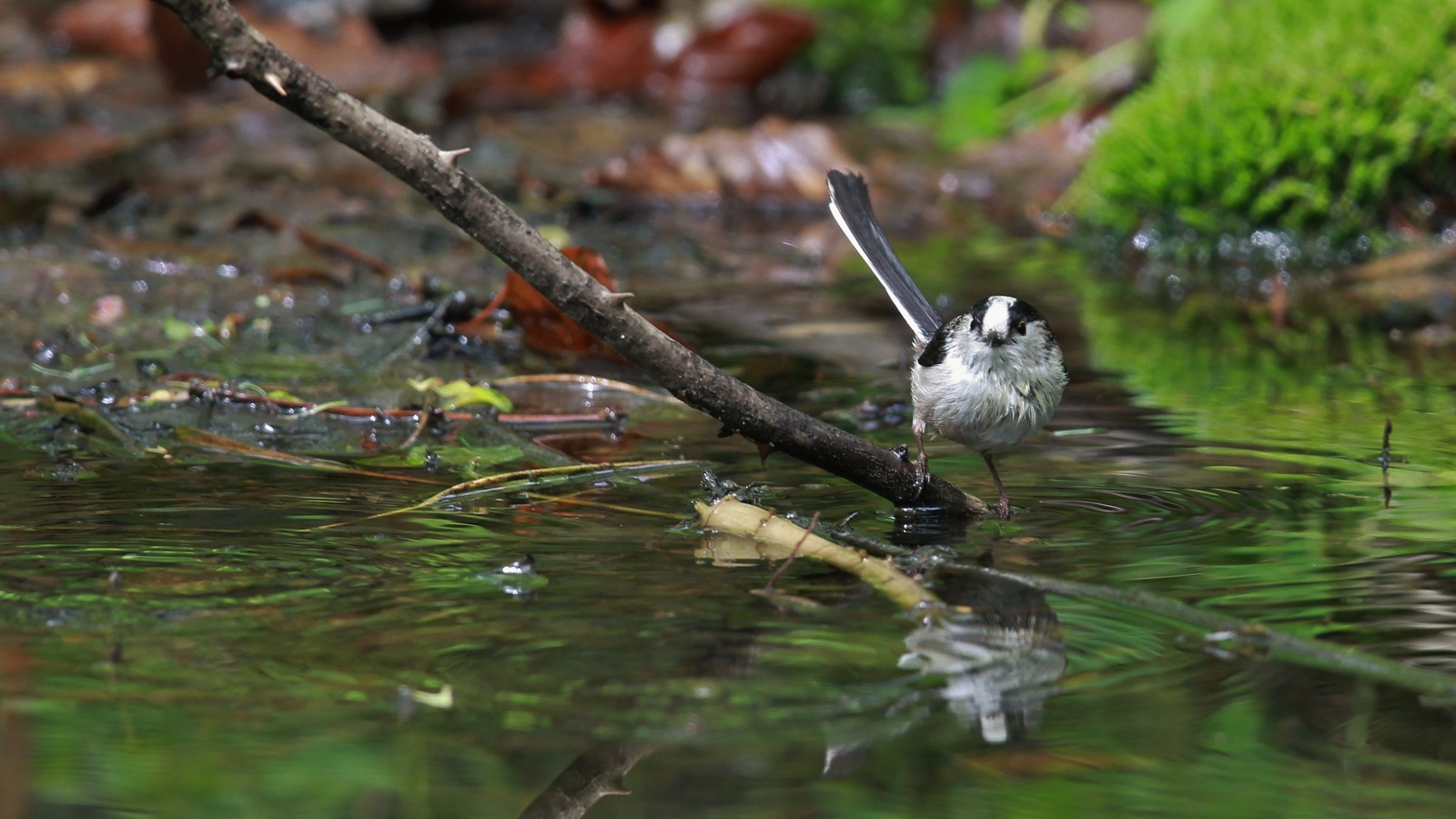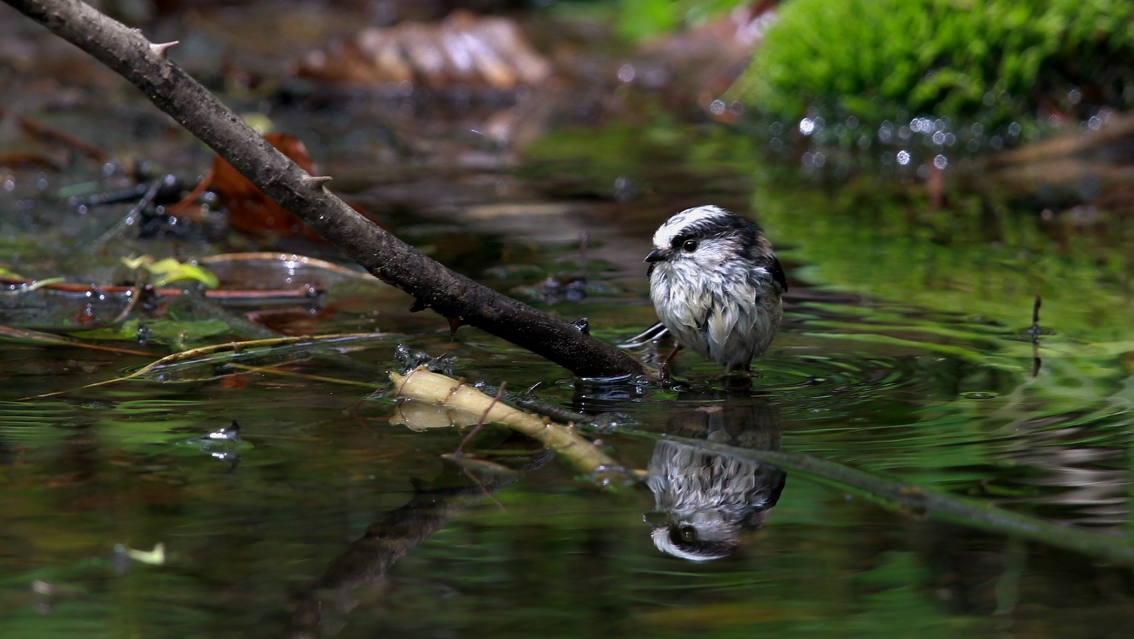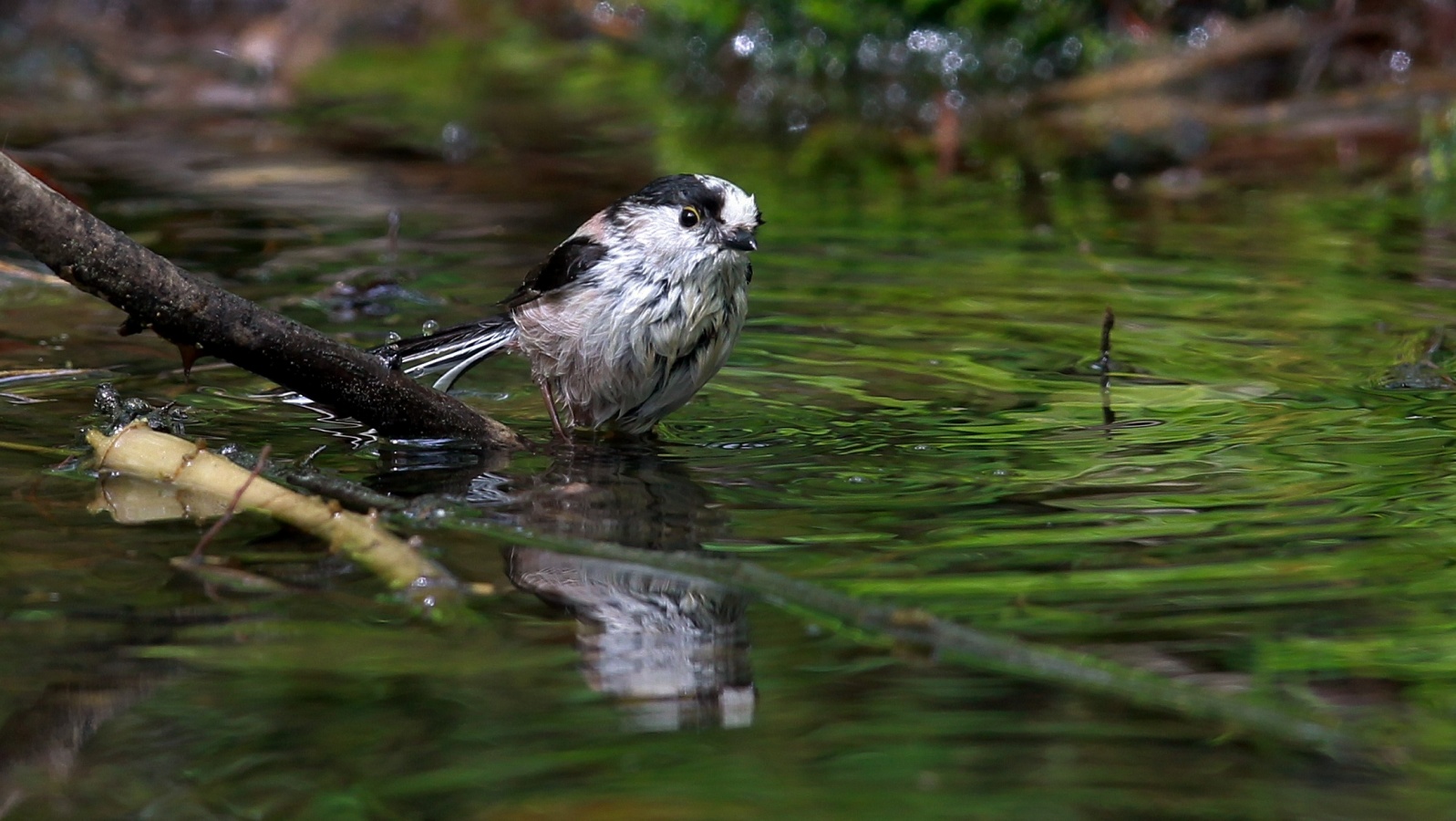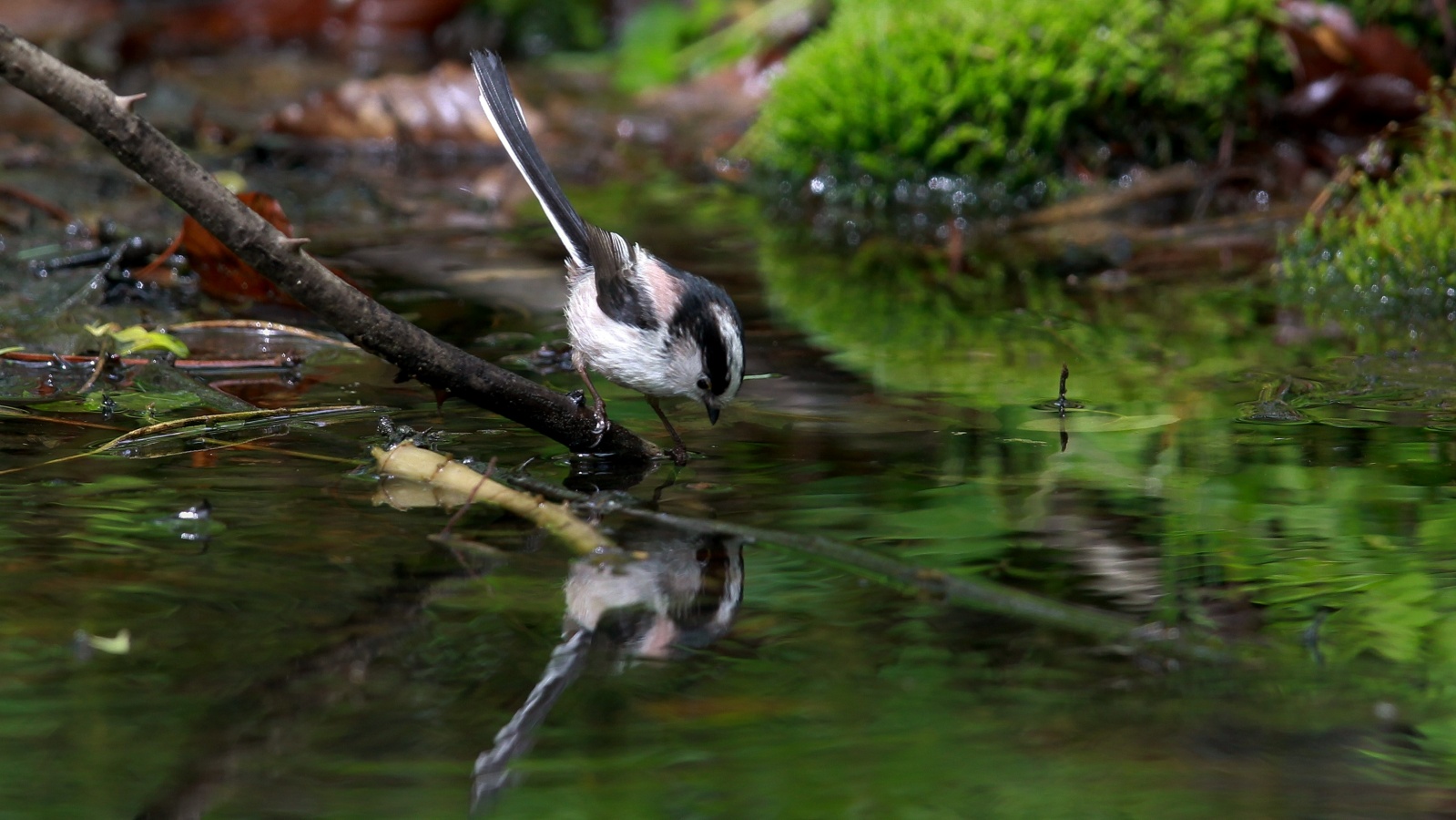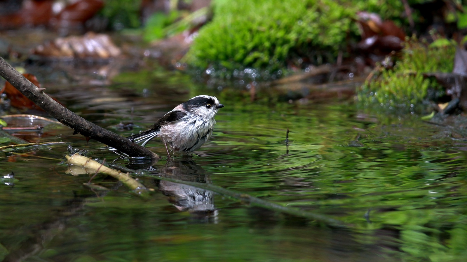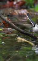 今朝の早朝鳥撮り……小さなエナガの群れと、先日撮った森の水場の水鏡の水浴びエナガ……