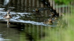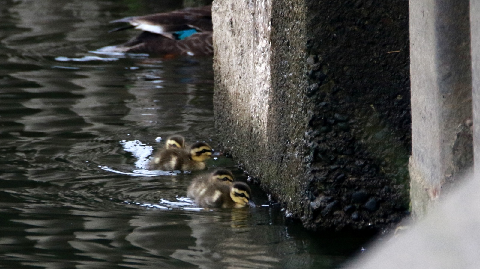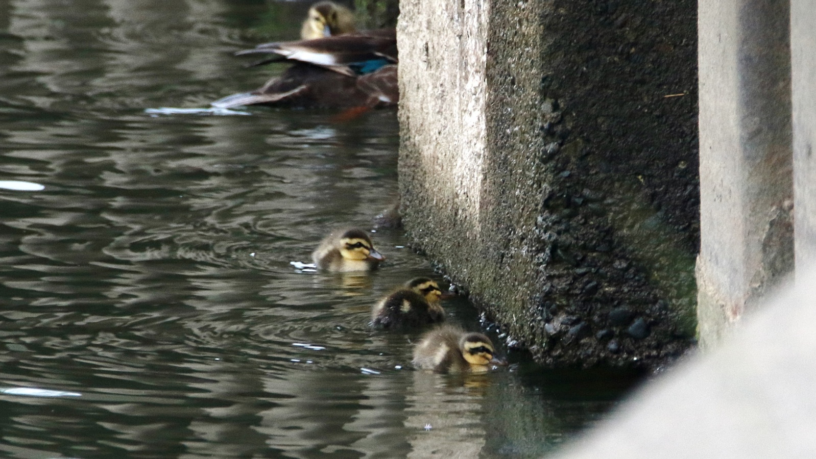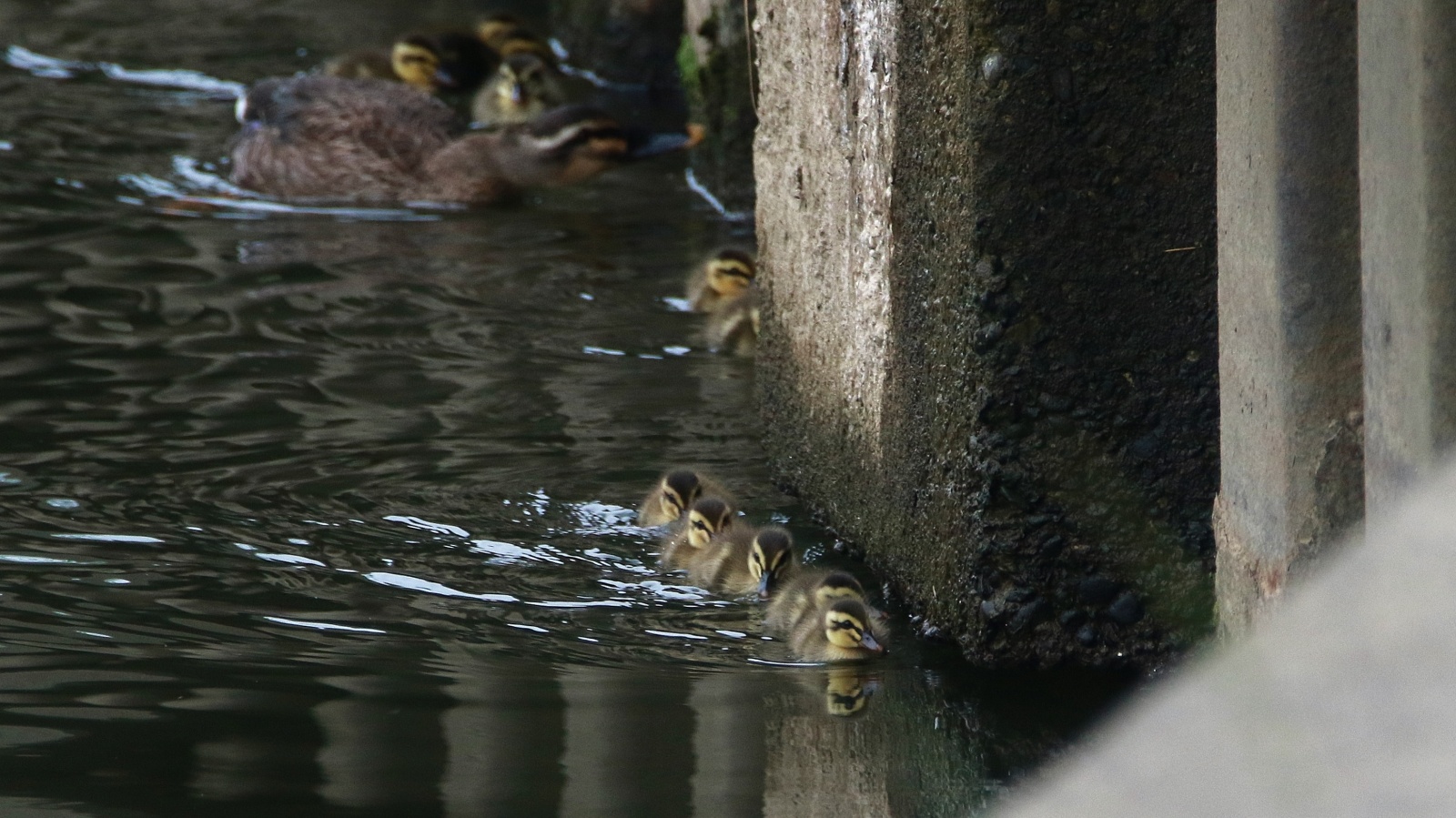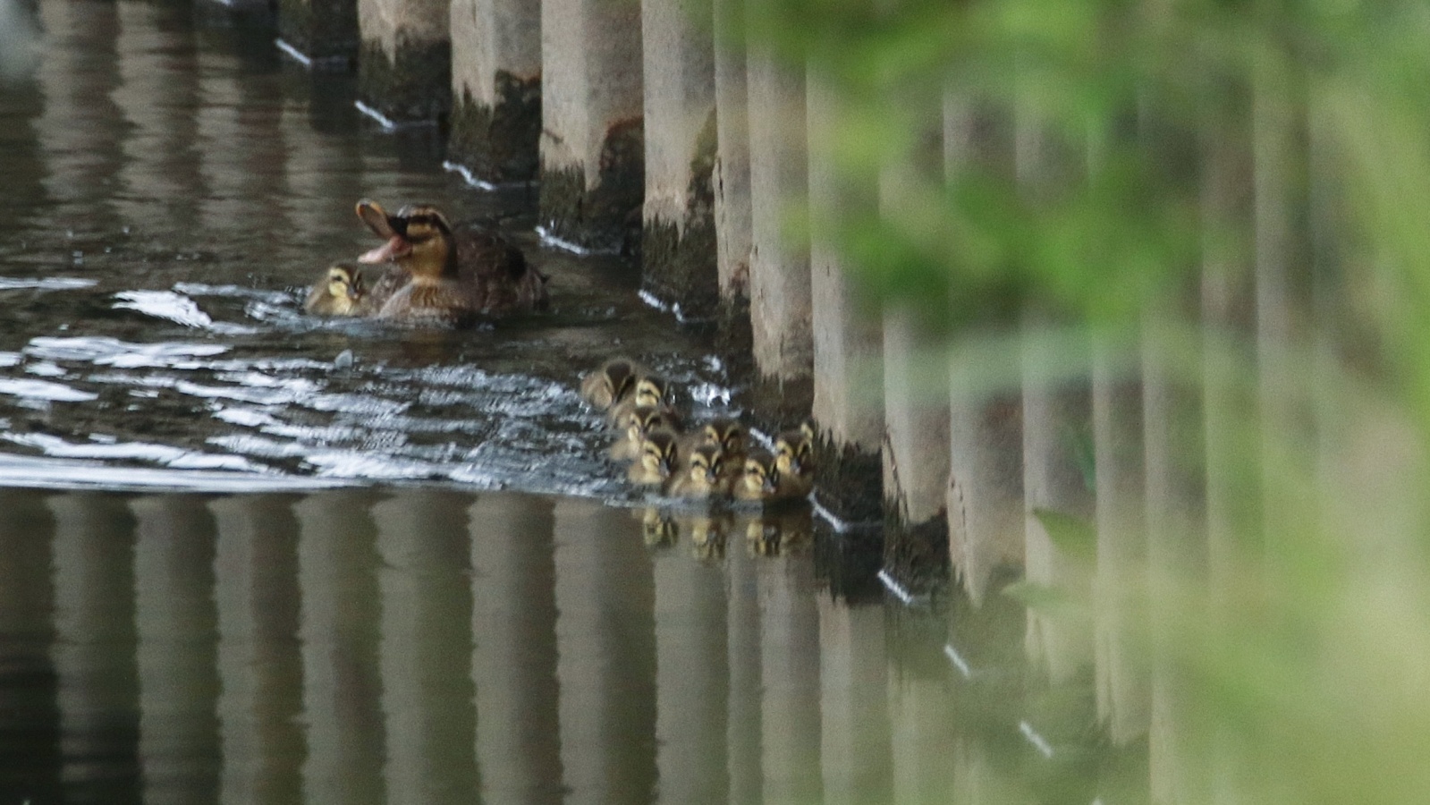 雛ガモにとっては初の別世界だったのでしょう~。………遠すぎる証拠写真です!