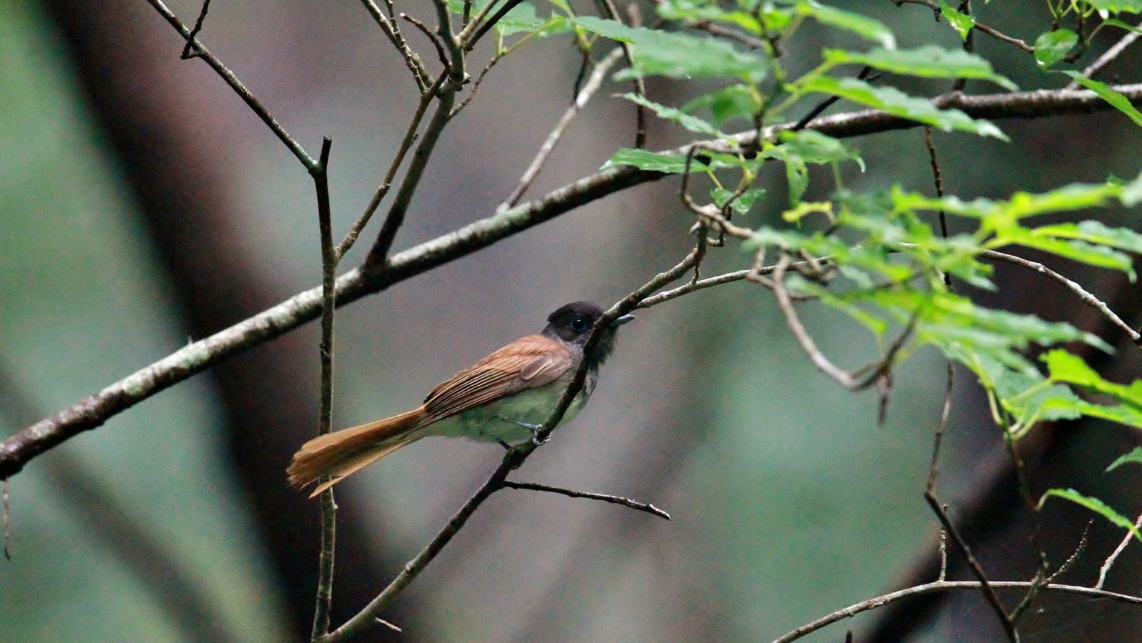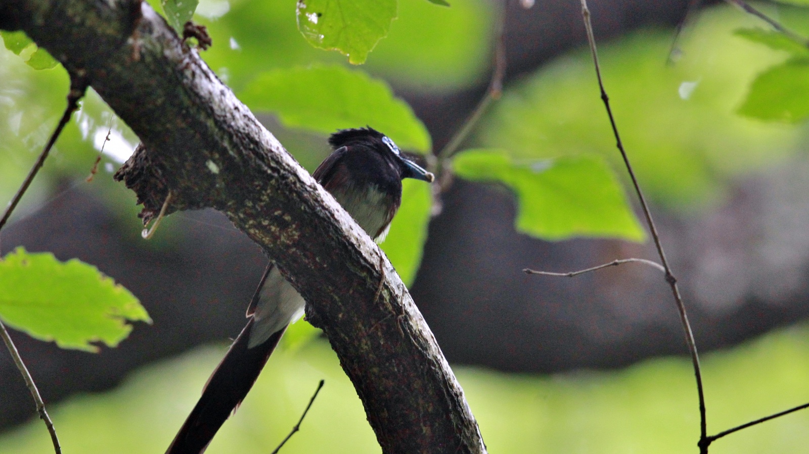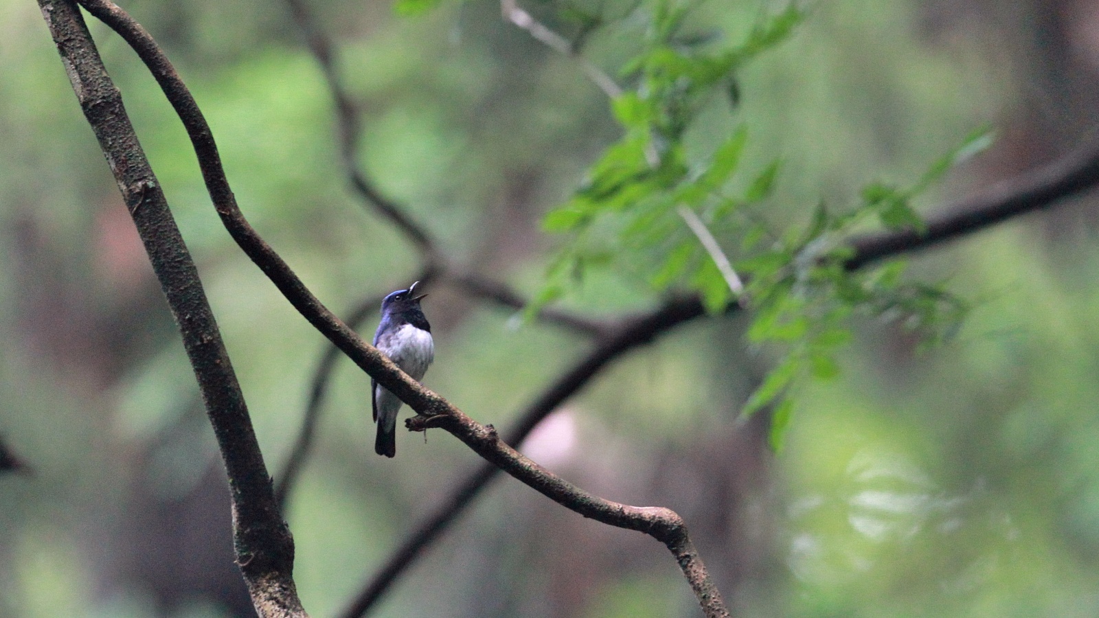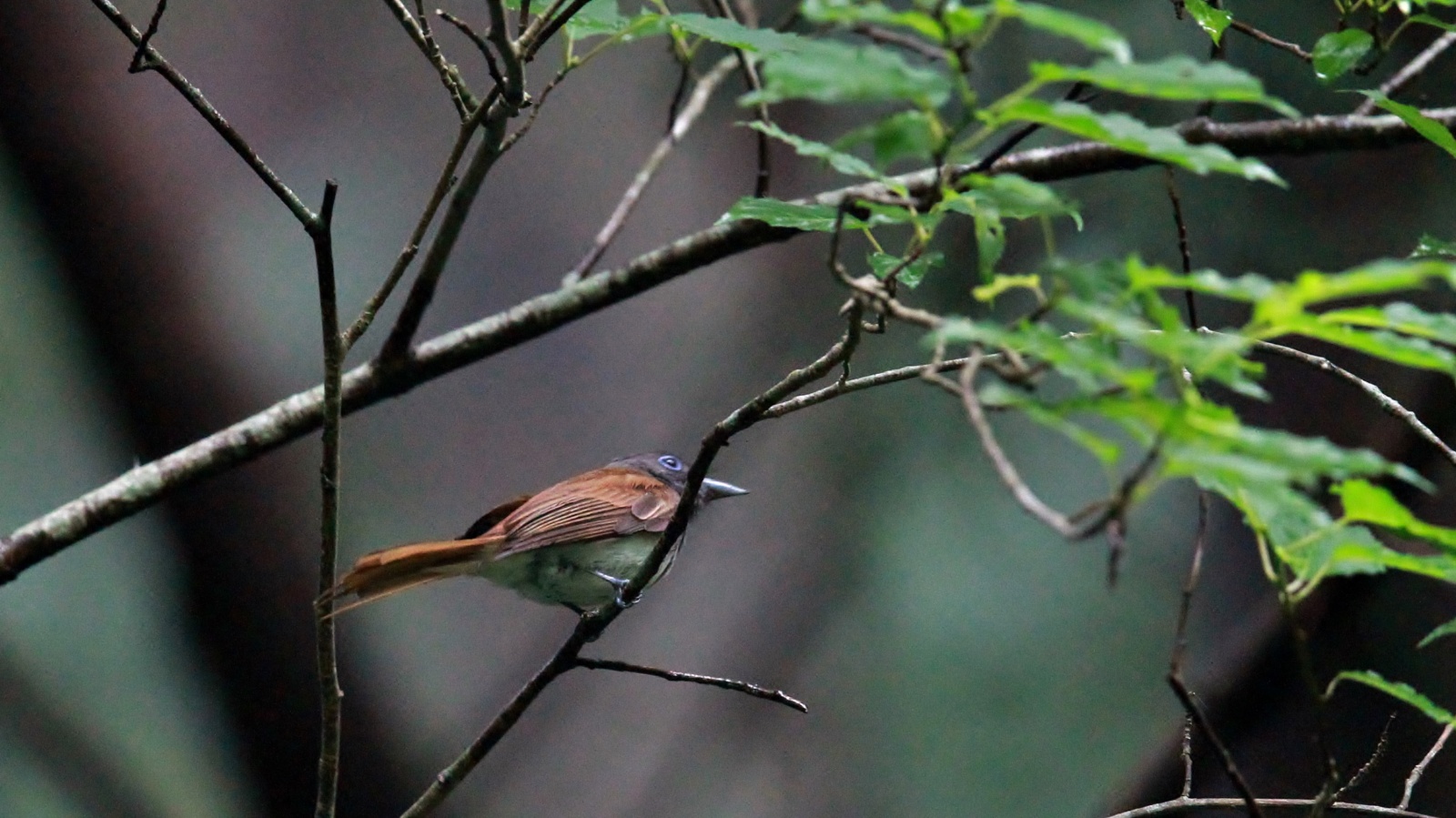サンコウチョウとオオルリ……この日は雨で空も暗く、しかも暗い渓谷~かなりザラザラな写真ですが証拠写真ということで~(笑)