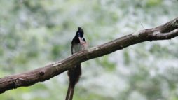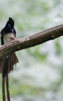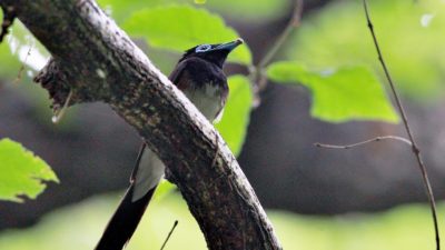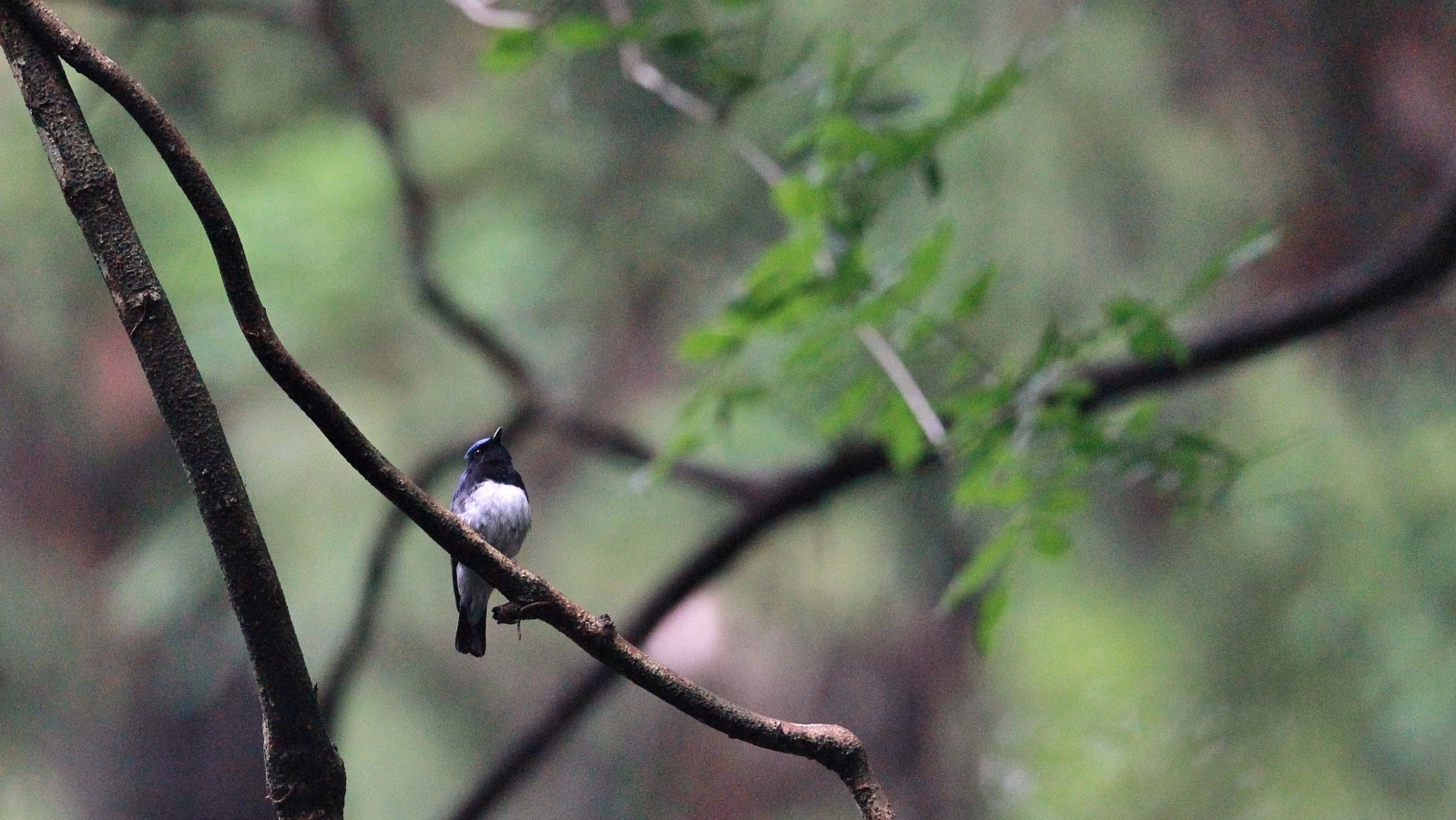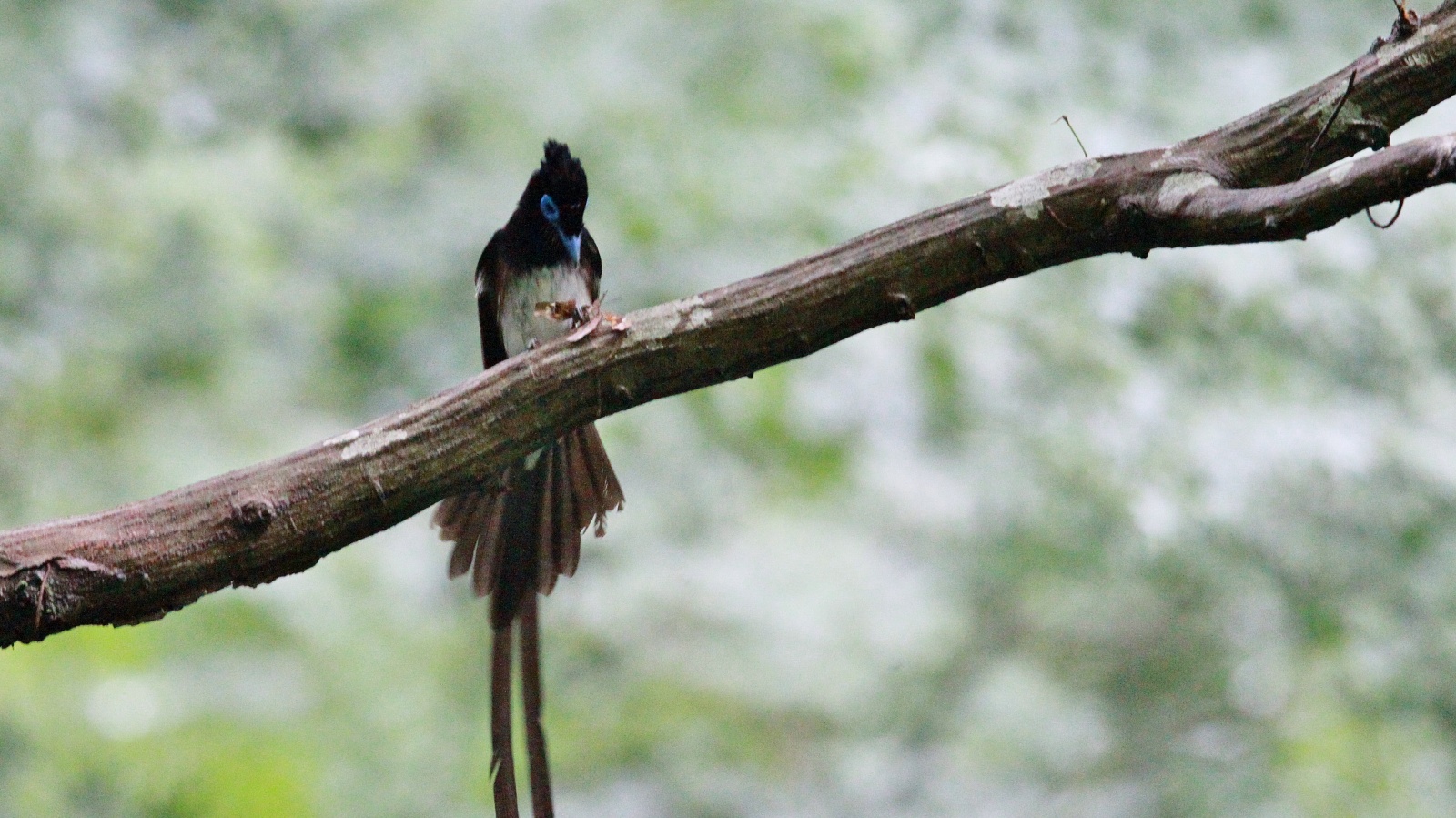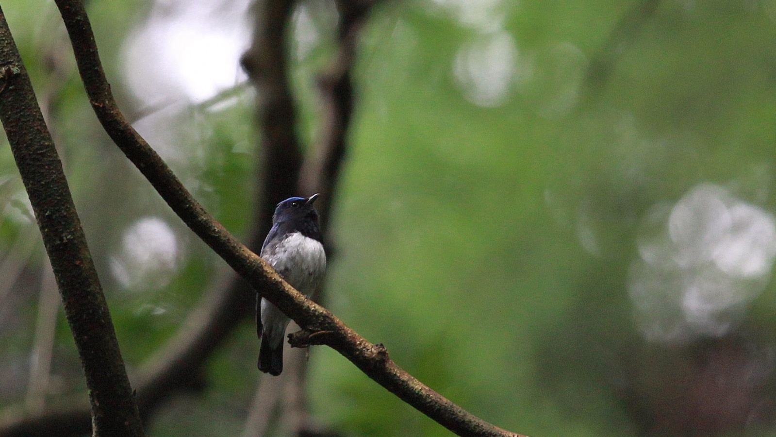 サンコウチョウとオオルリ……この日は雨で空も暗く、しかも暗い渓谷~かなりザラザラな写真ですが証拠写真ということで~(笑)